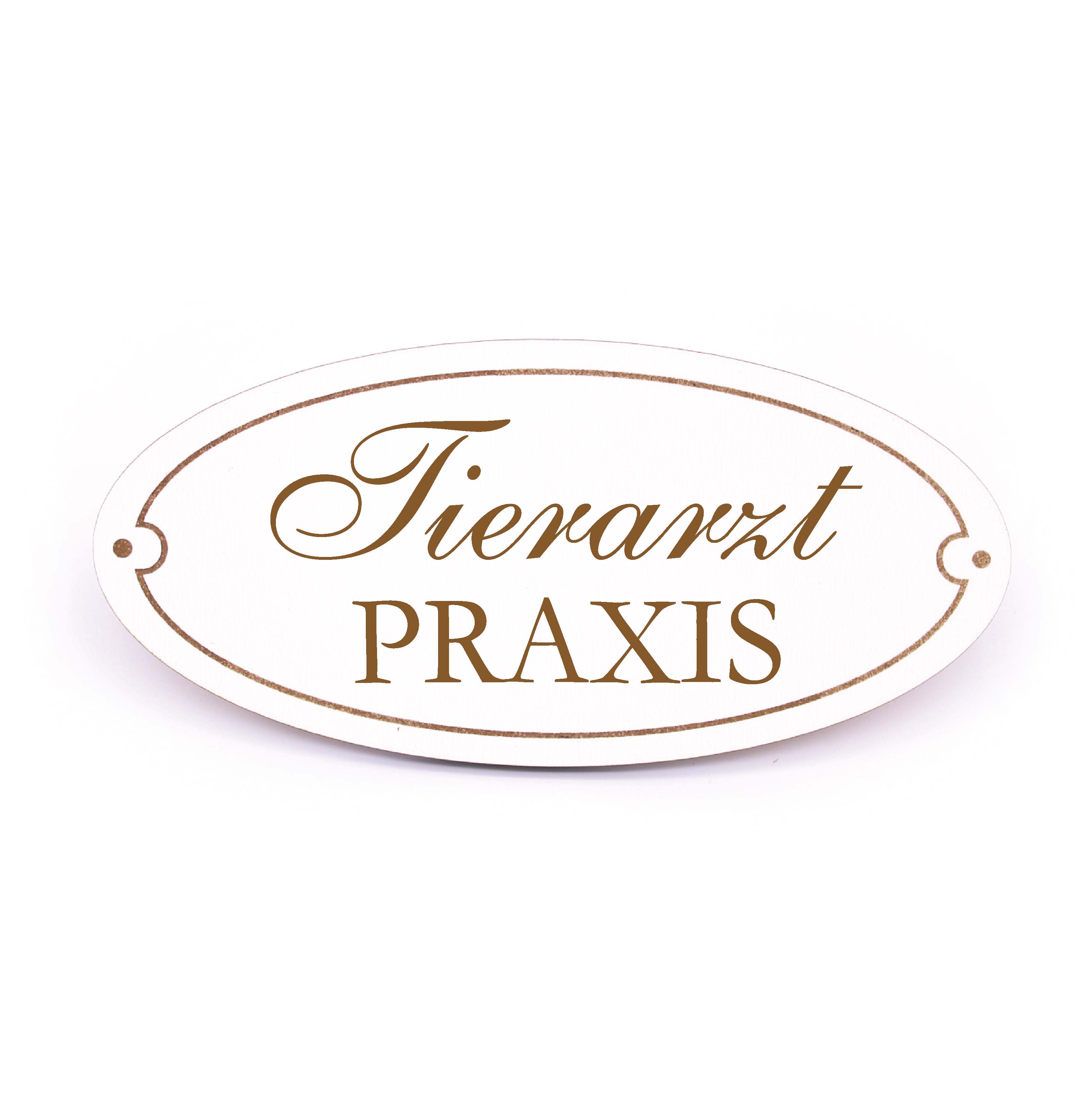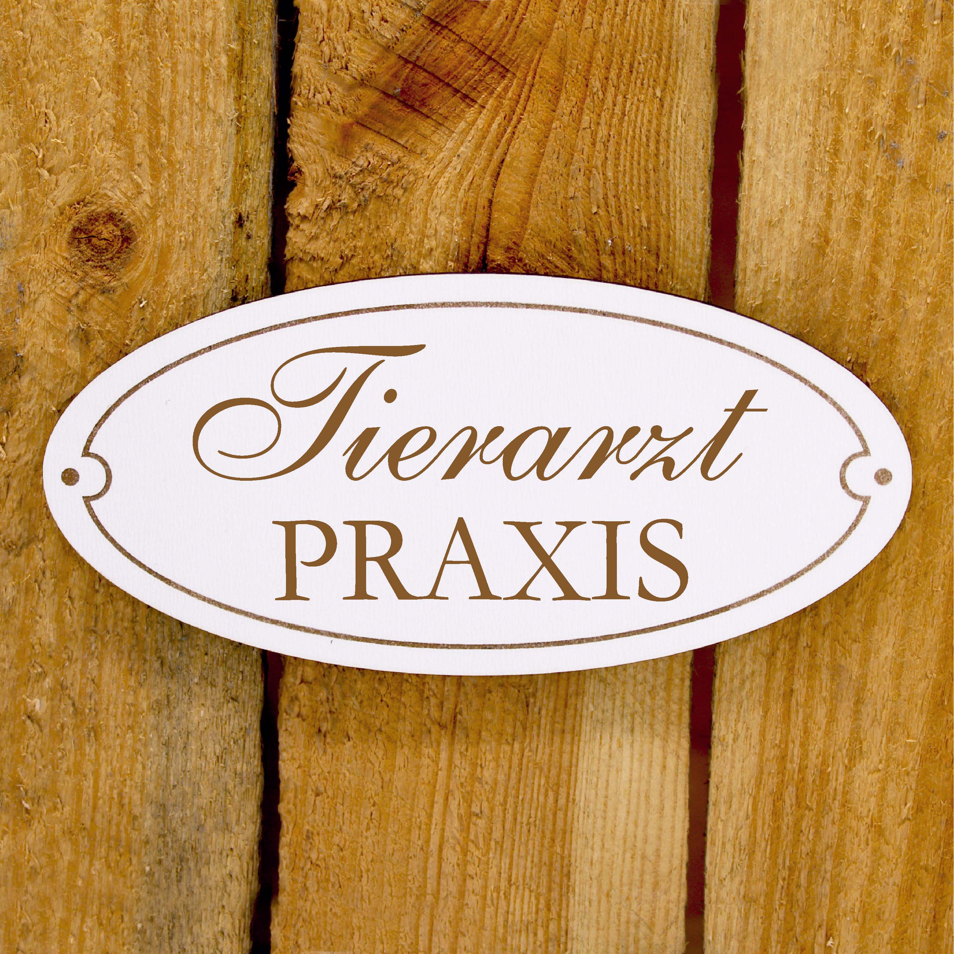 Türschild TIERARZT PRAXIS Schild oval Tierklinik Holzschild weiß Gravur selbstklebend Türdeko 15x7cm