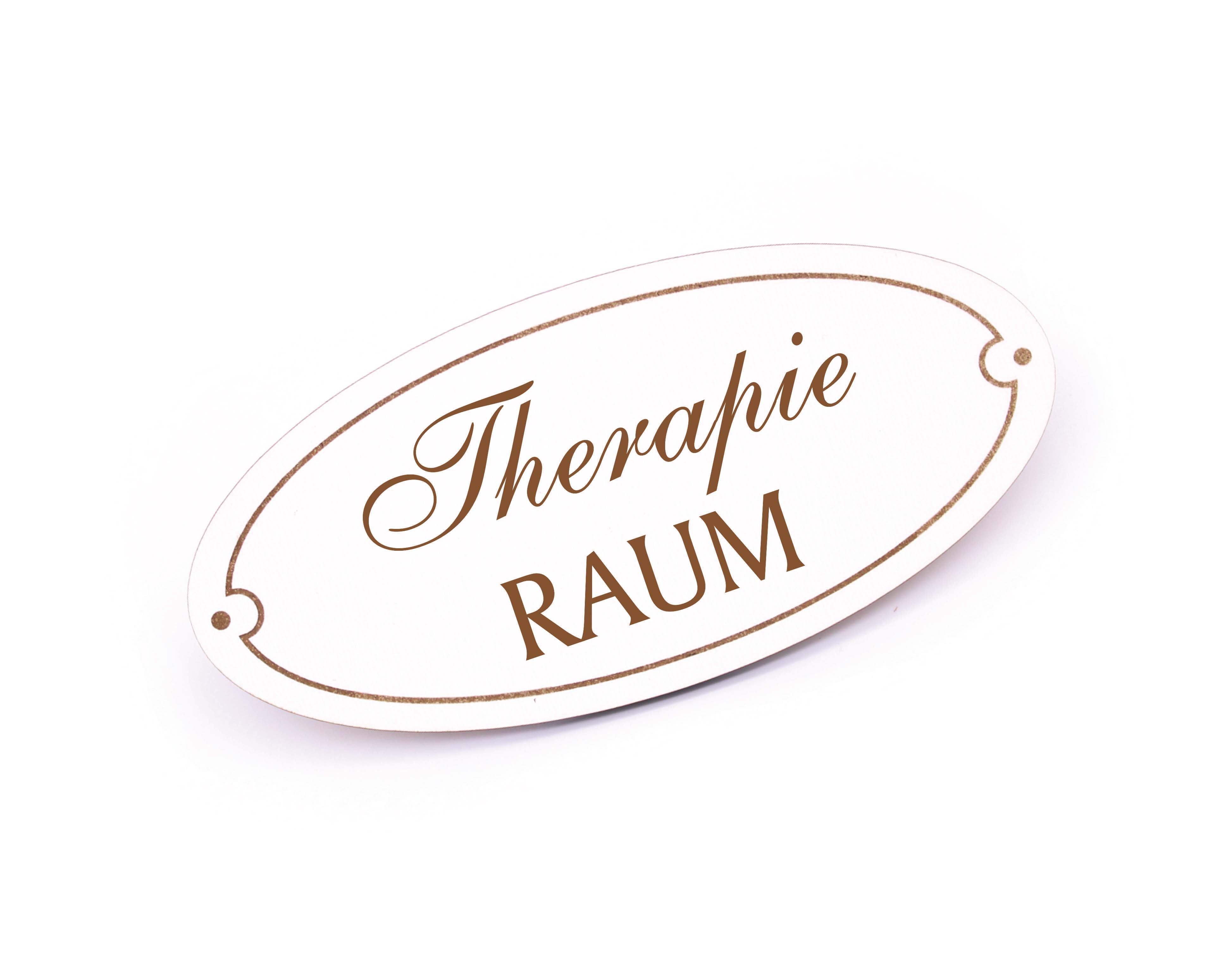 Türschild Therapie Raum - Schild oval Therapieraum Holzschild Praxis Gravur selbstklebend 15 x 7 cm