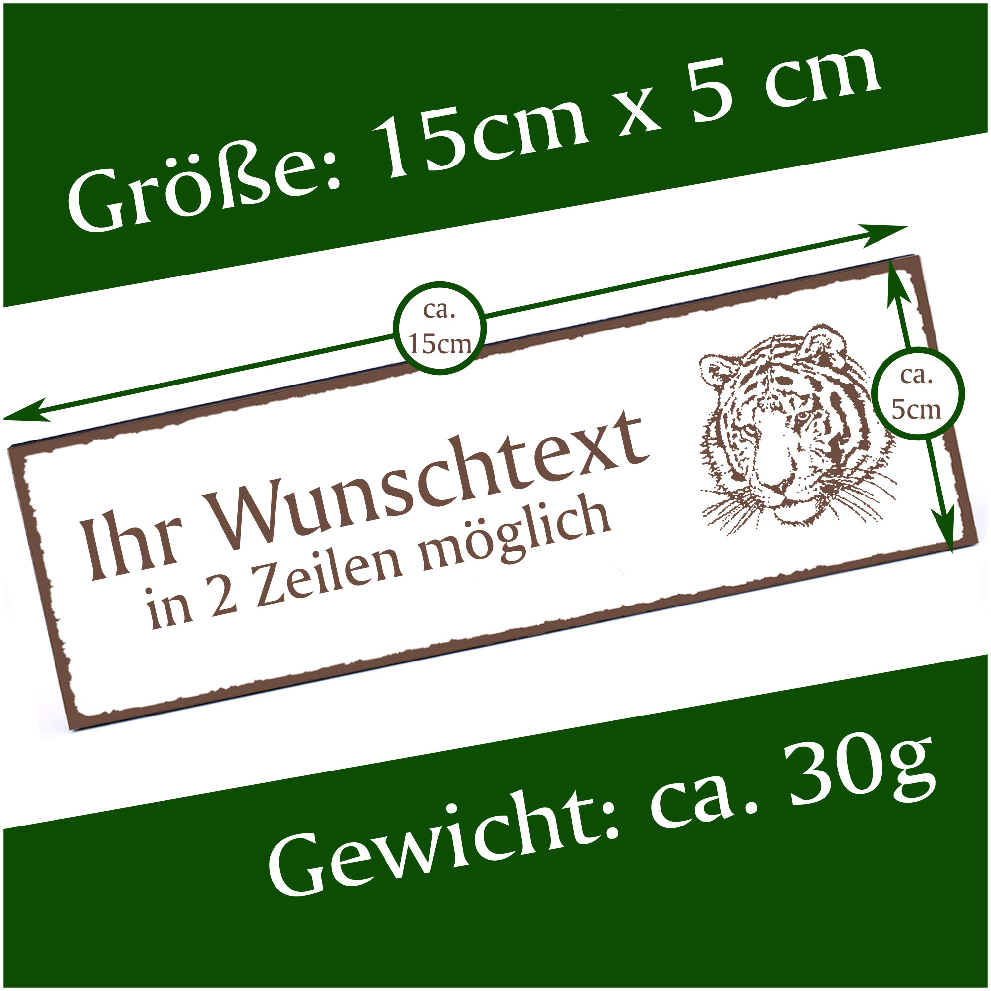 Türschild Tiger Kopf Namensschild personalisiert mit Gravur - 150mm x 50mm - selbstklebend