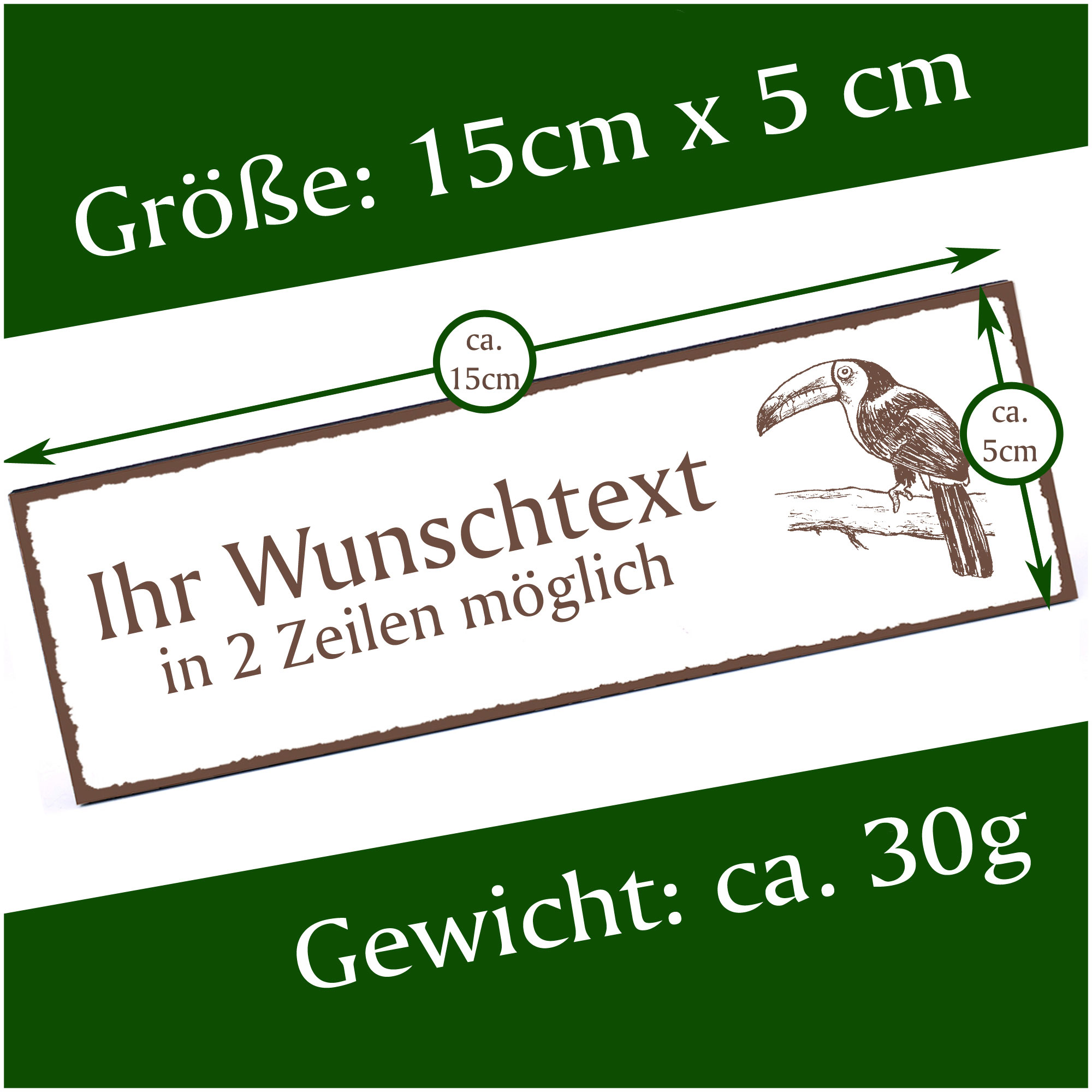 Türschild Tukan Namensschild personalisiert mit Gravur - 150mm x 50mm - selbstklebend