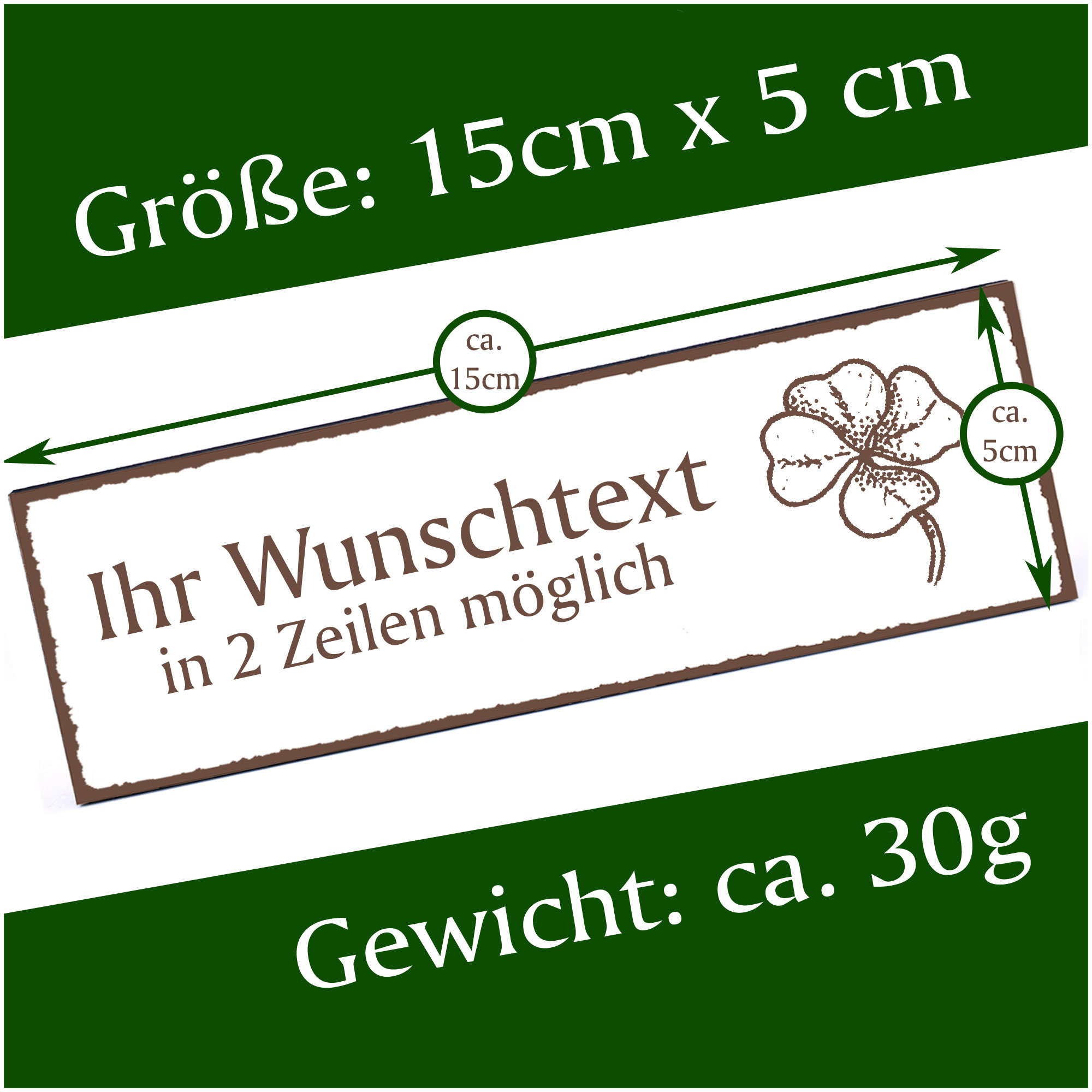 Türschild Vierblättriges Kleeblatt Namensschild personalisiert mit Gravur - 150mm x 50mm - selbstk