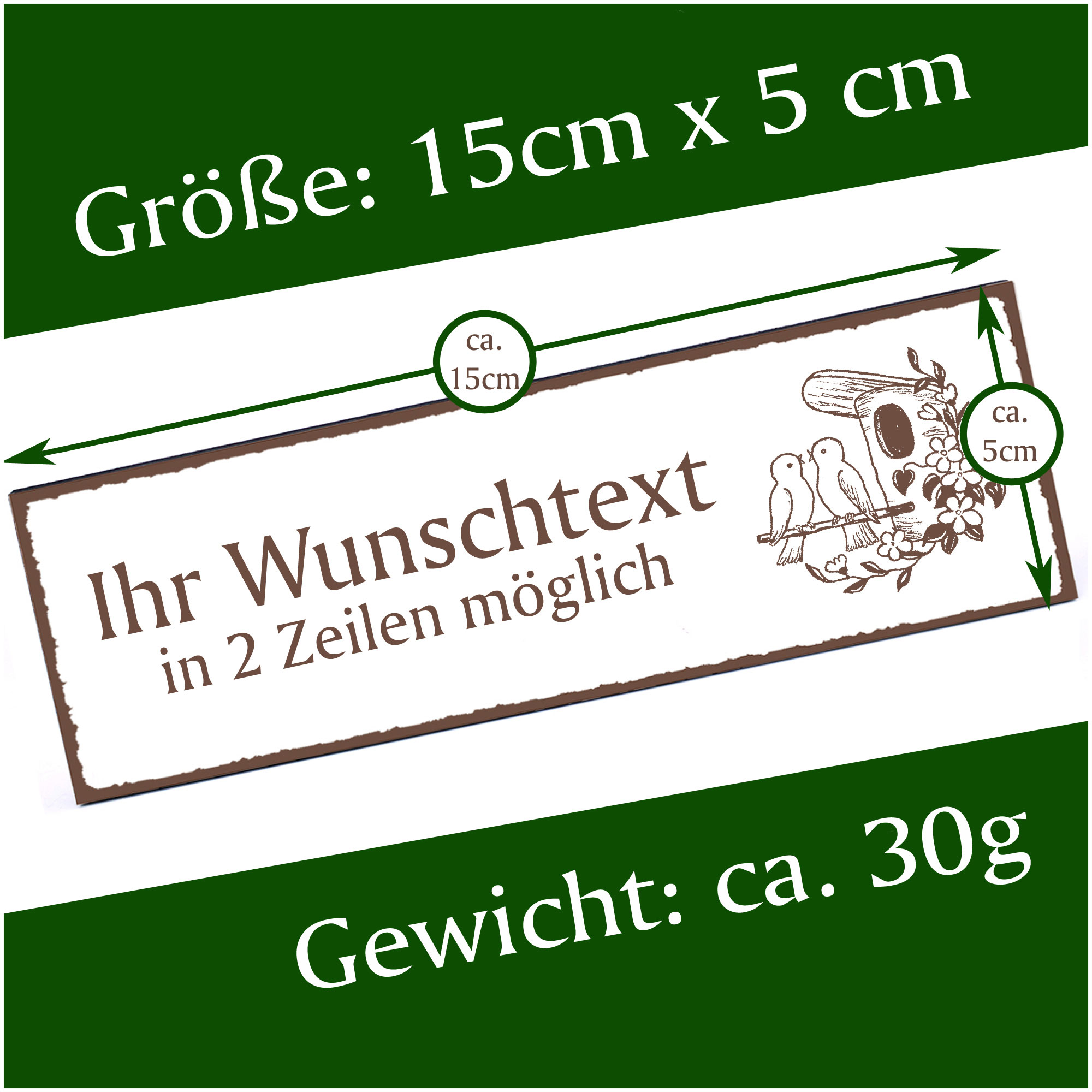 Türschild Vogelhaus mit Vögeln Namensschild personalisiert mit Gravur - 150mm x 50mm - selbstkleben