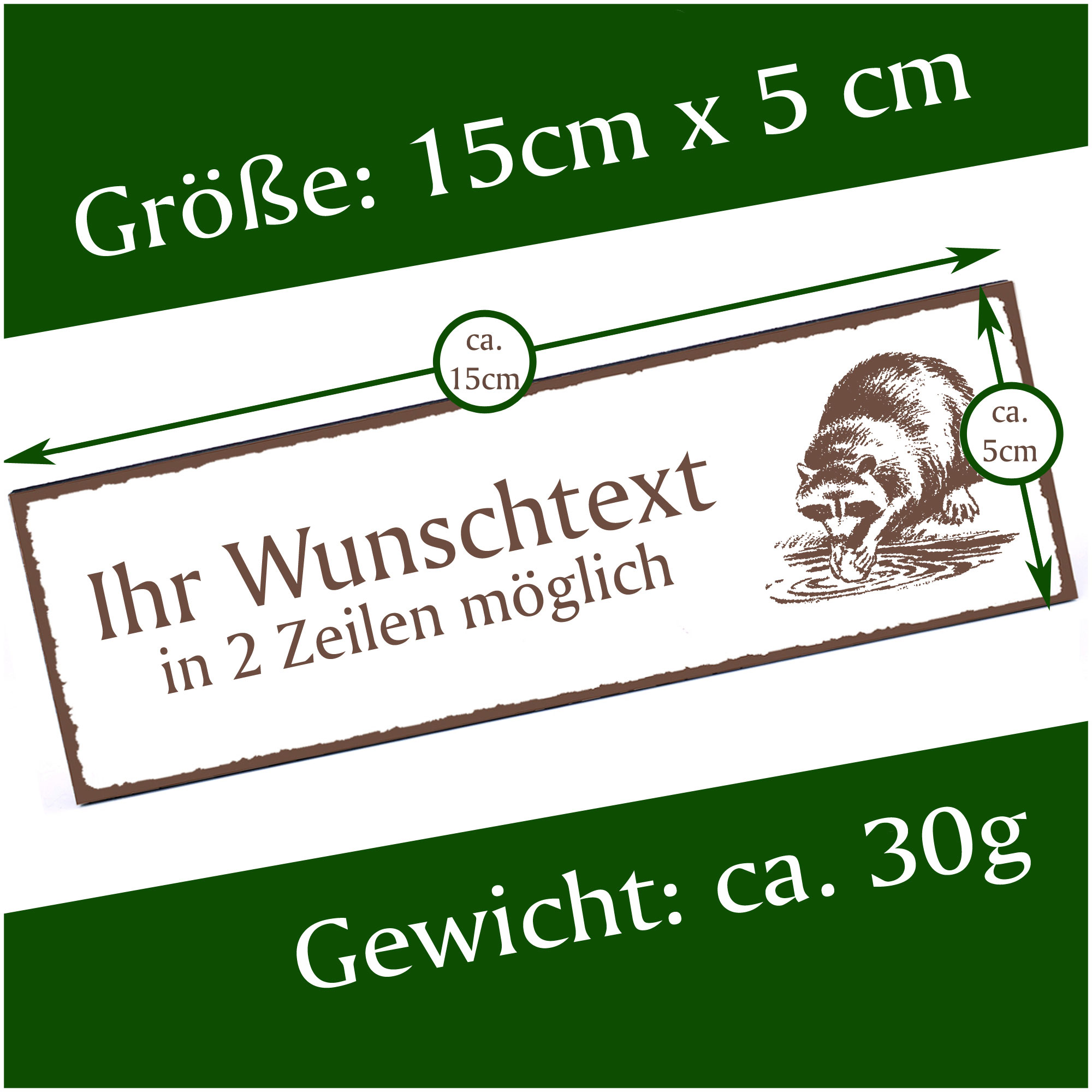 Türschild Waschbär Namensschild personalisiert mit Gravur - 150mm x 50mm - selbstklebend