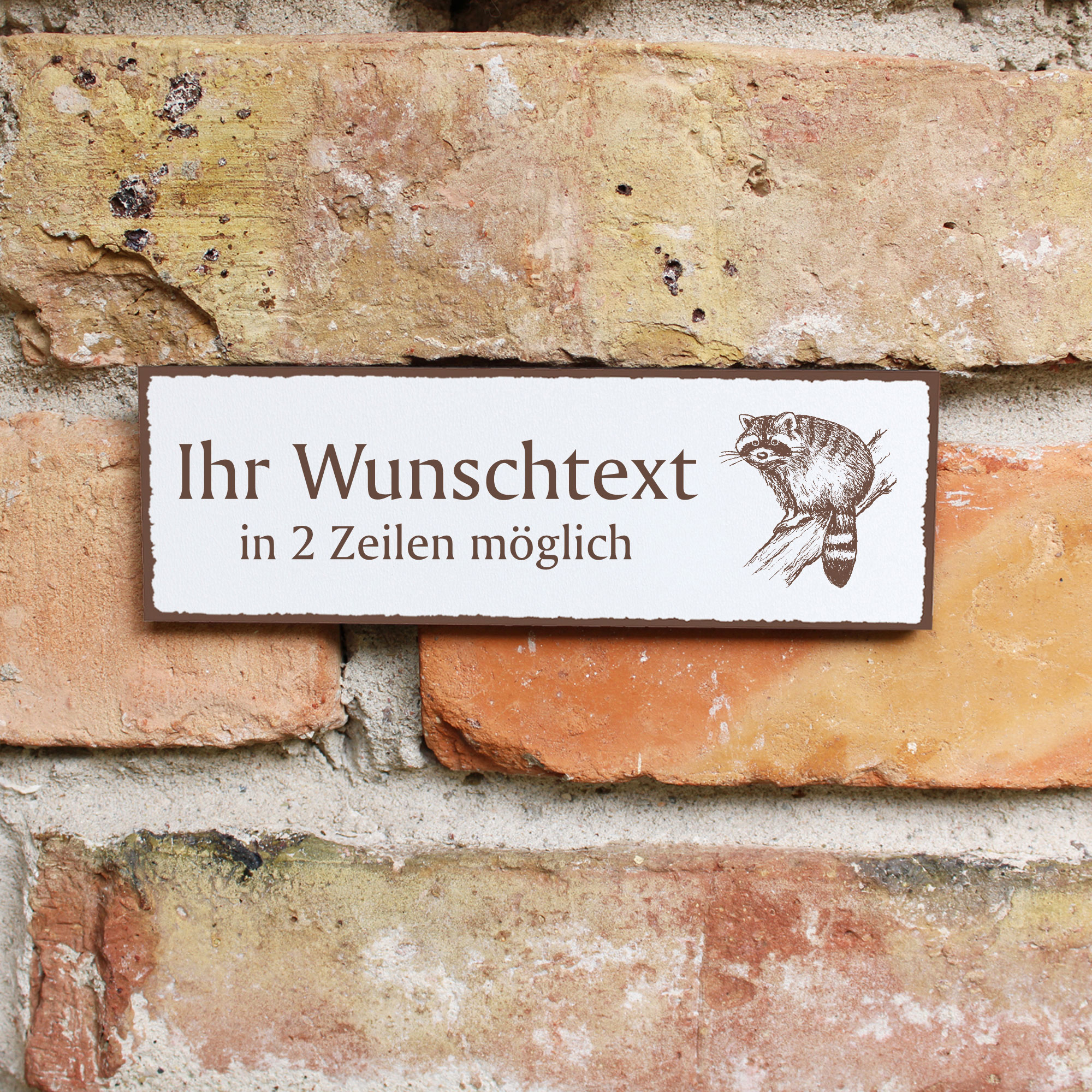 Türschild Waschbär auf Ast Namensschild personalisiert mit Gravur - 150mm x 50mm - selbstklebend
