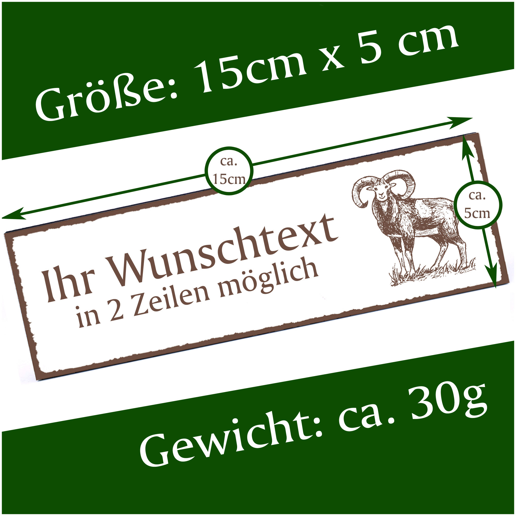 - HOLZSCHILD: Das Türschild ist ca. 150mm x 50mm groß. Das HDF Holz hat eine Stärke von 5mm. Insgesamt wiegt das Schild ca. 30g. Bitte vor Feuchtigkeit schützen