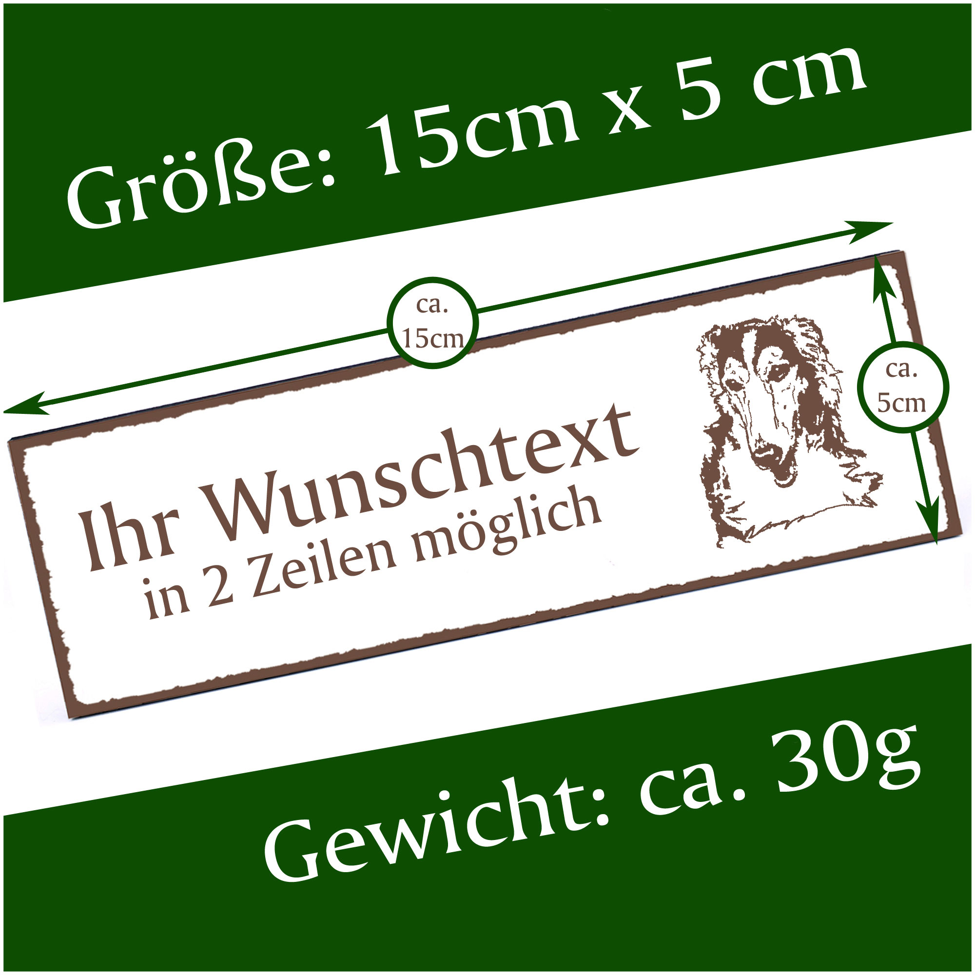 Türschild Windhund Barsoi Namensschild personalisiert mit Gravur - 150mm x 50mm - selbstklebend