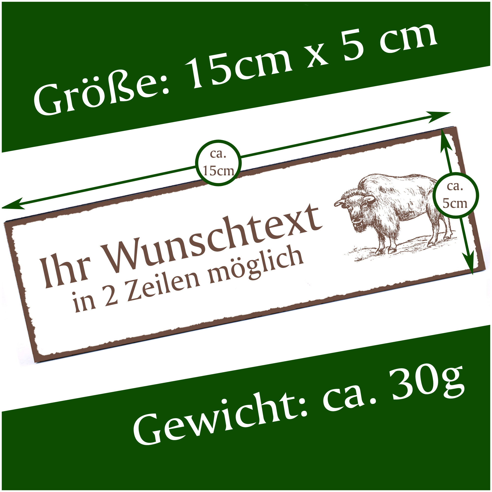 Türschild Wisent Namensschild personalisiert mit Gravur - 150mm x 50mm - selbstklebend