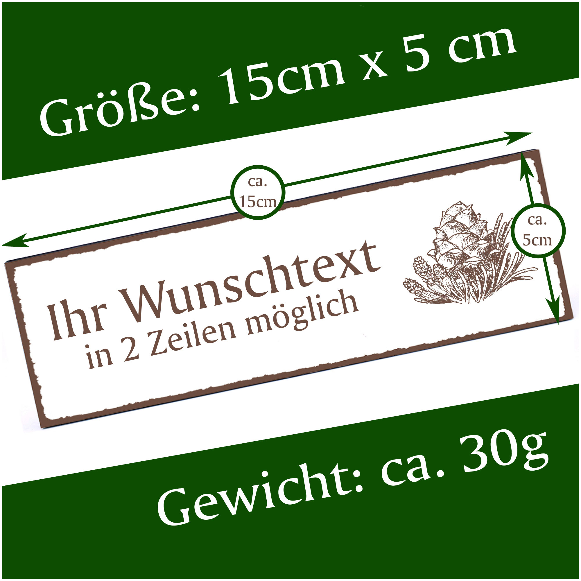 Türschild Zirbenzapfen Namensschild personalisiert mit Gravur - 150mm x 50mm - selbstklebend