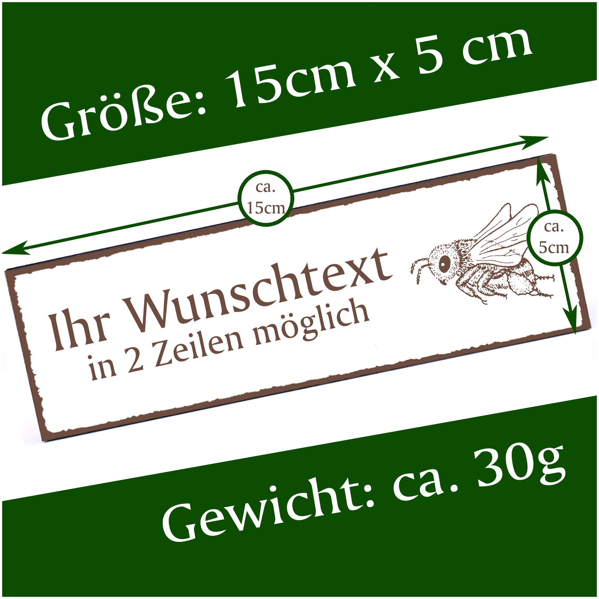 - HOLZSCHILD: Das Türschild ist ca. 150mm x 50mm groß. Das HDF Holz hat eine Stärke von 5mm. Insgesamt wiegt das Schild ca. 30g. Bitte vor Feuchtigkeit schützen