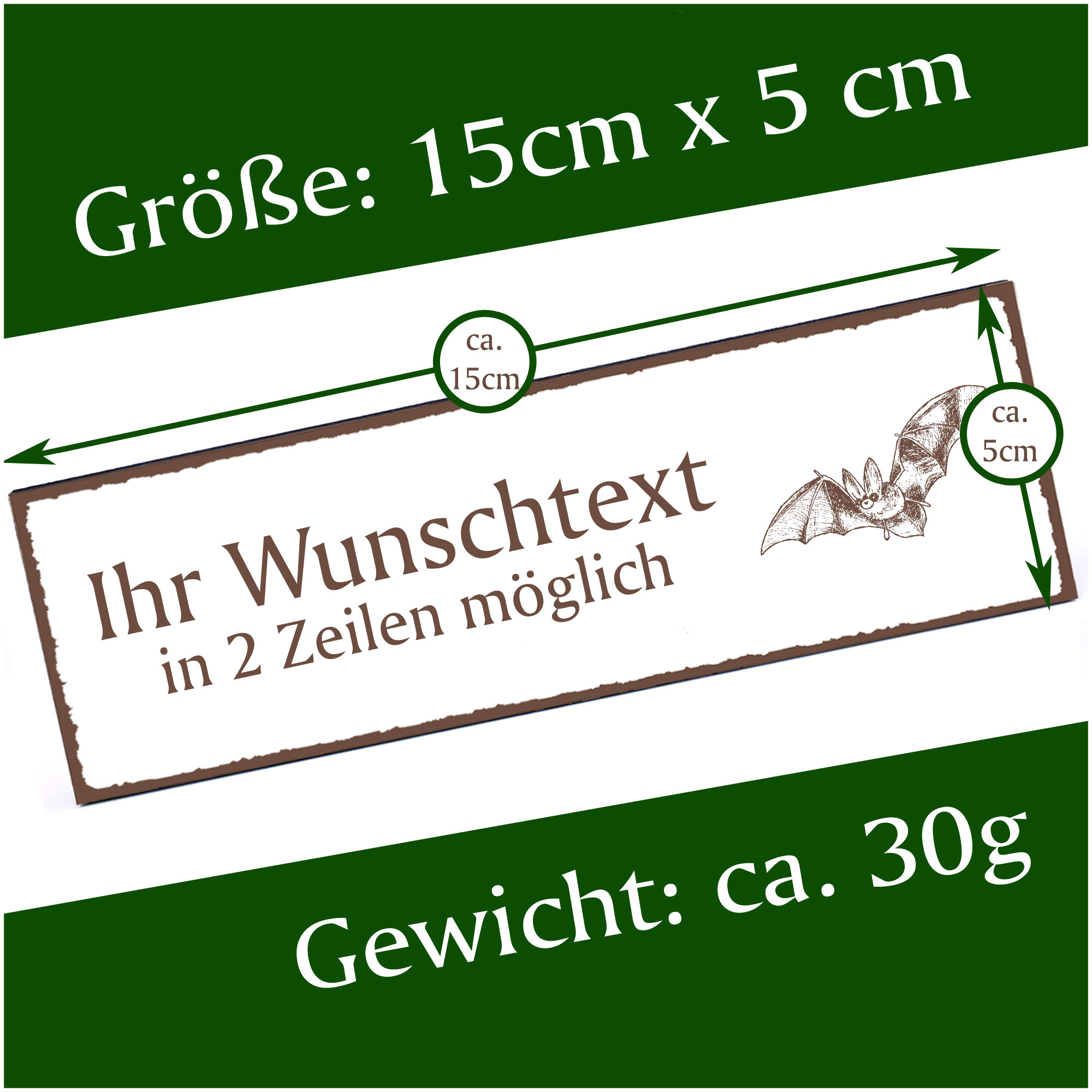 Türschild fliegende Fledermaus Namensschild personalisiert mit Gravur - 150mm x 50mm - selbstkleben