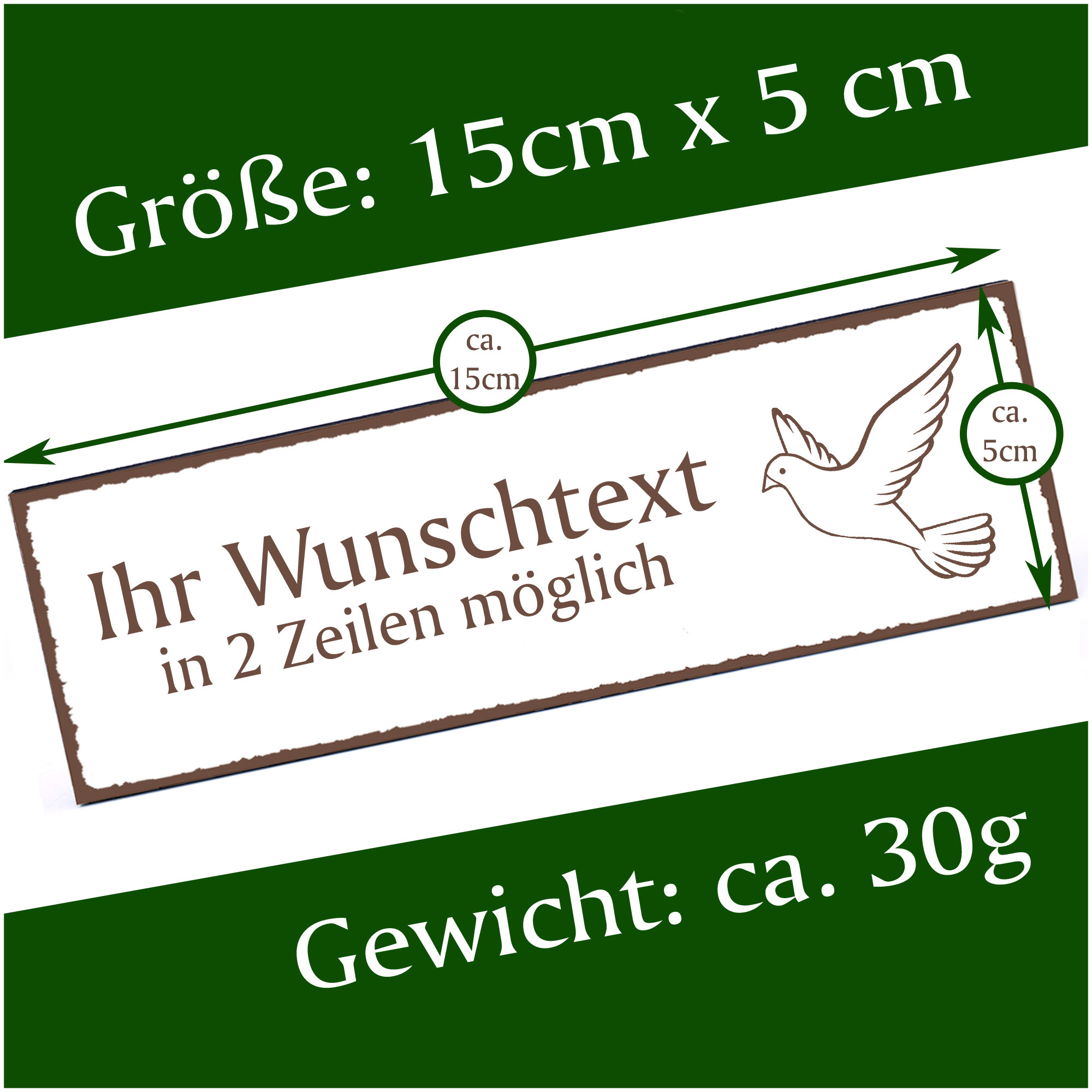 Türschild fliegende Taube Namensschild personalisiert mit Gravur - 150mm x 50mm - selbstklebend