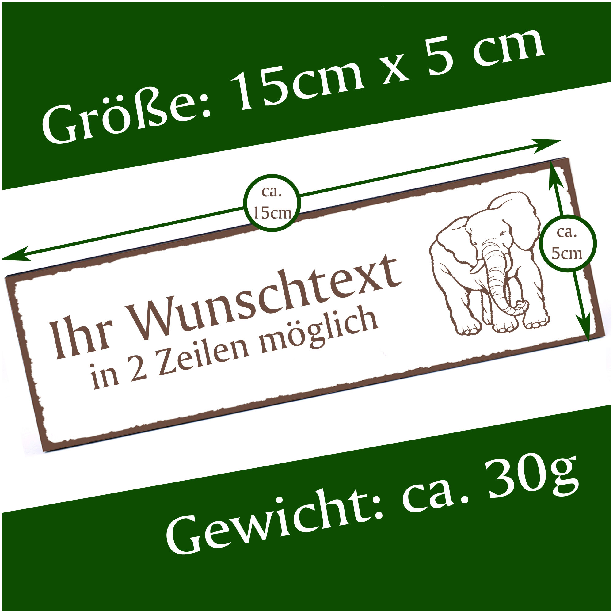 Türschild gezeichneter Elefant Namensschild personalisiert mit Gravur - 150mm x 50mm - selbstkleben