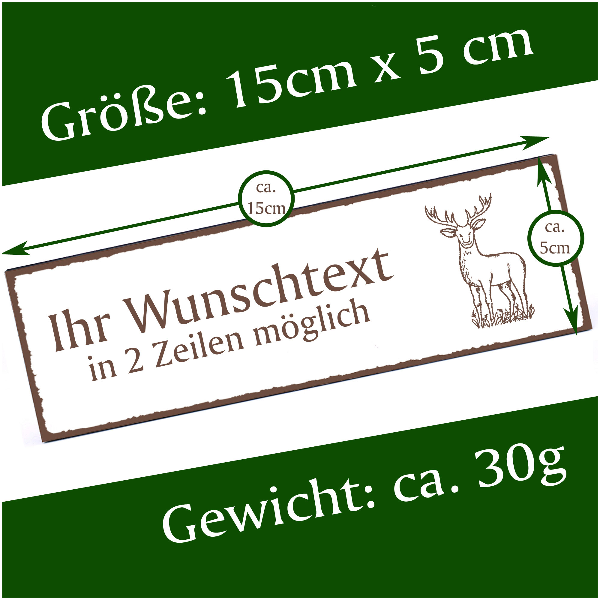 Türschild gezeichneter Hirsch Namensschild personalisiert mit Gravur - 150mm x 50mm - selbstklebend