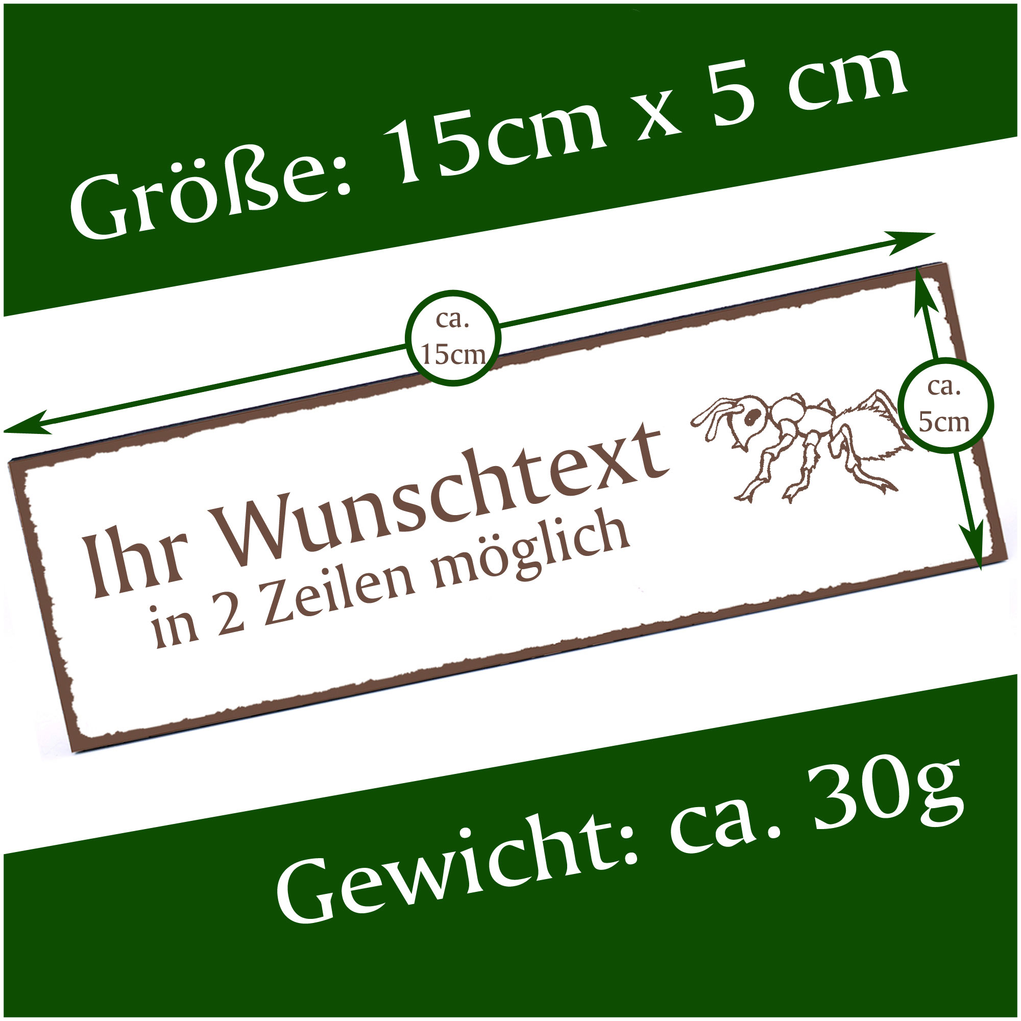 Türschild helle Ameise Namensschild personalisiert mit Gravur - 150mm x 50mm - selbstklebend