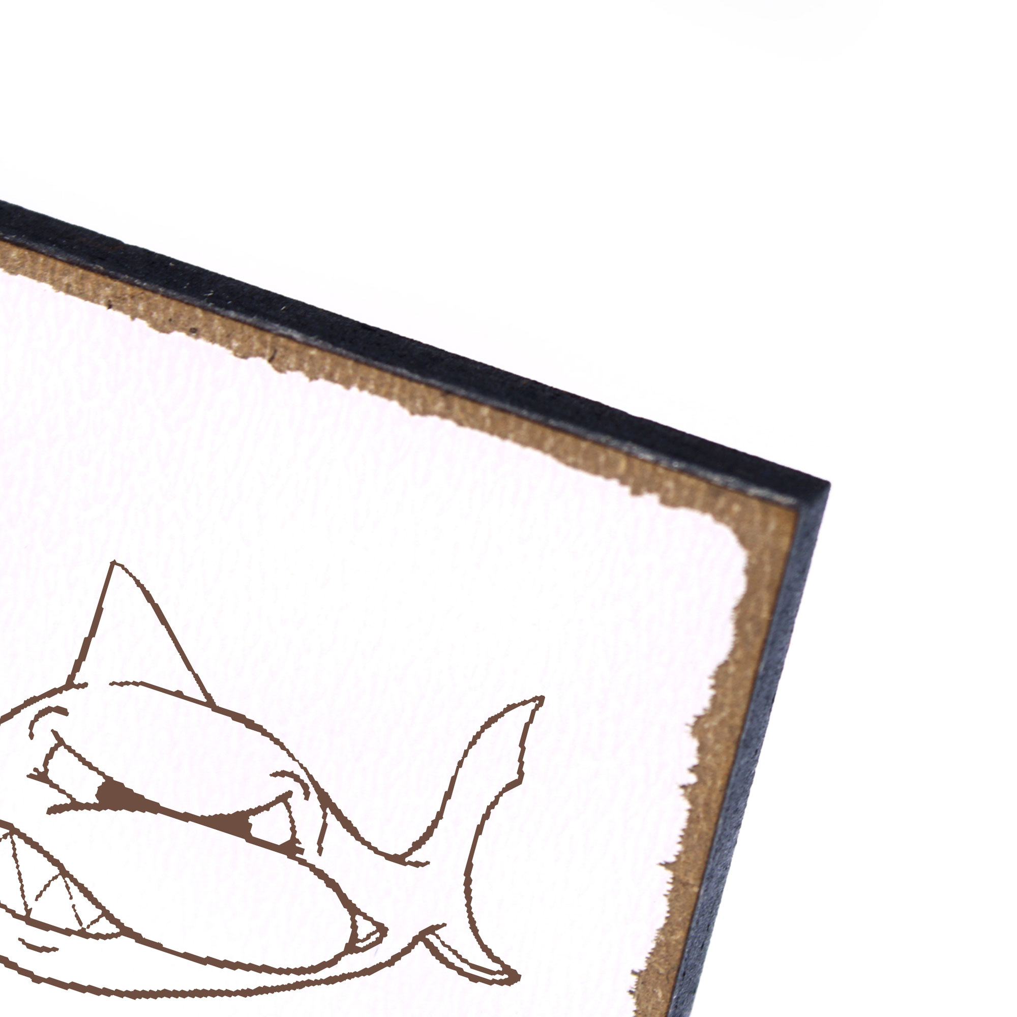 Türschild lachender Hai Namensschild personalisiert mit Gravur - 150mm x 50mm - selbstklebend
