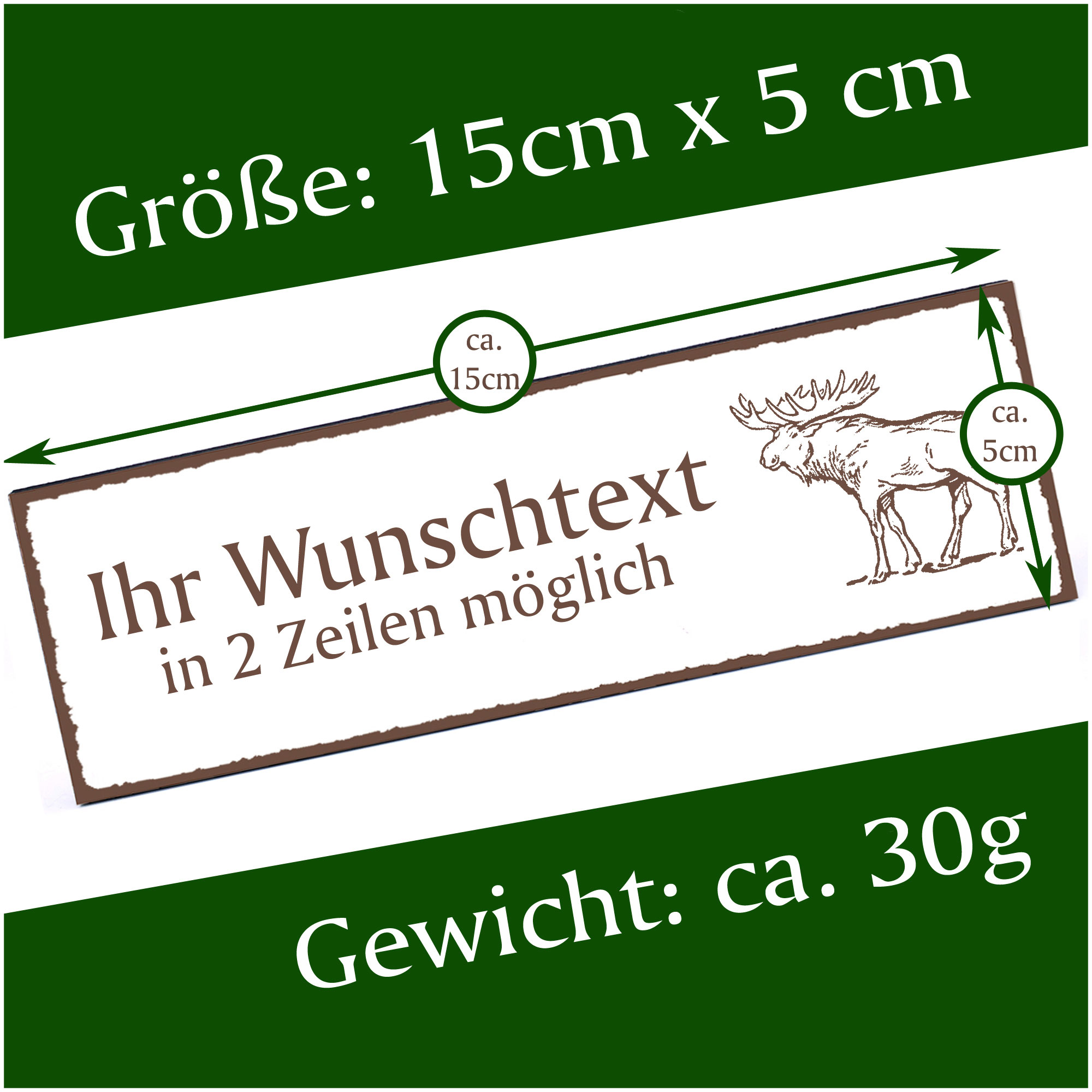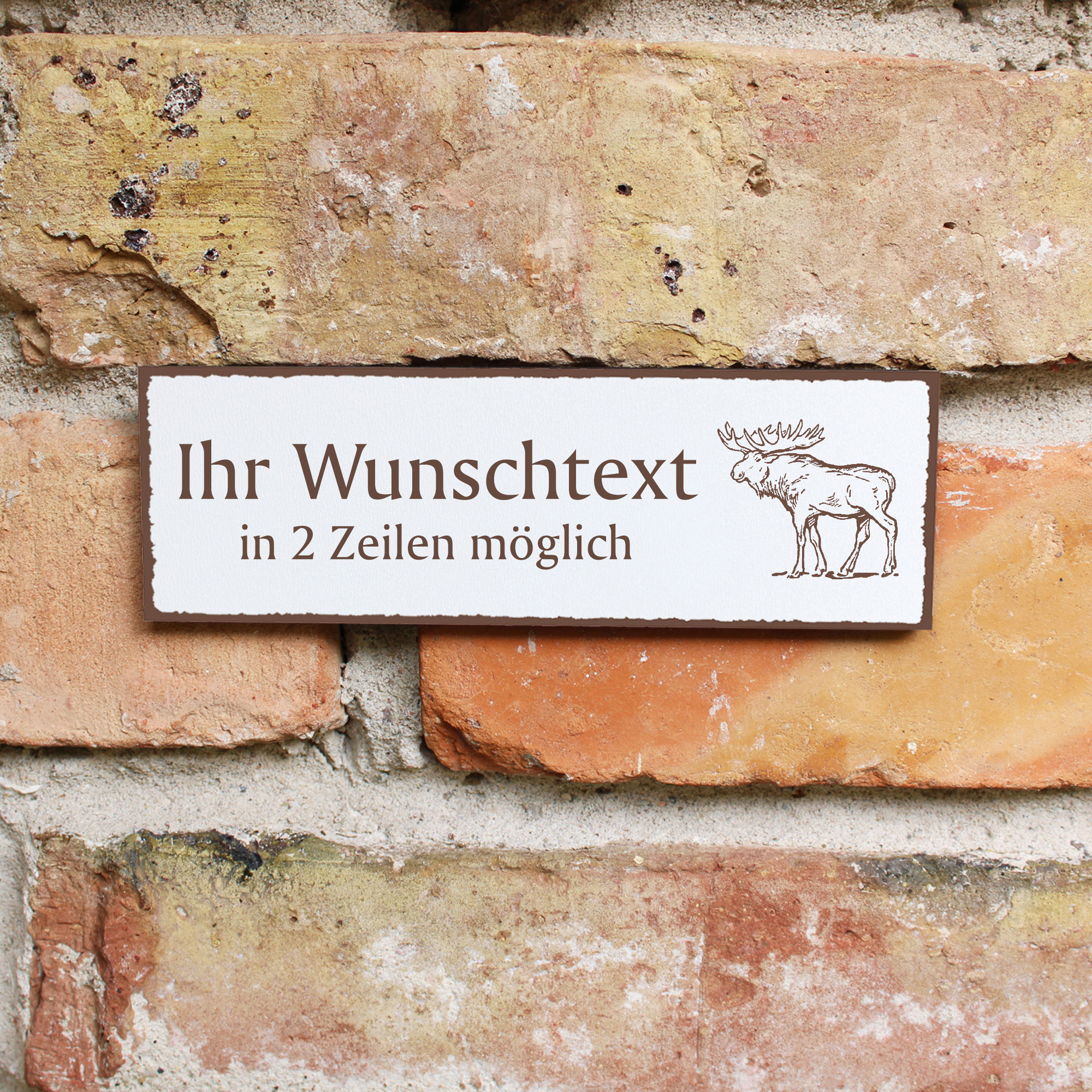Türschild laufender Elch Namensschild personalisiert mit Gravur - 150mm x 50mm - selbstklebend