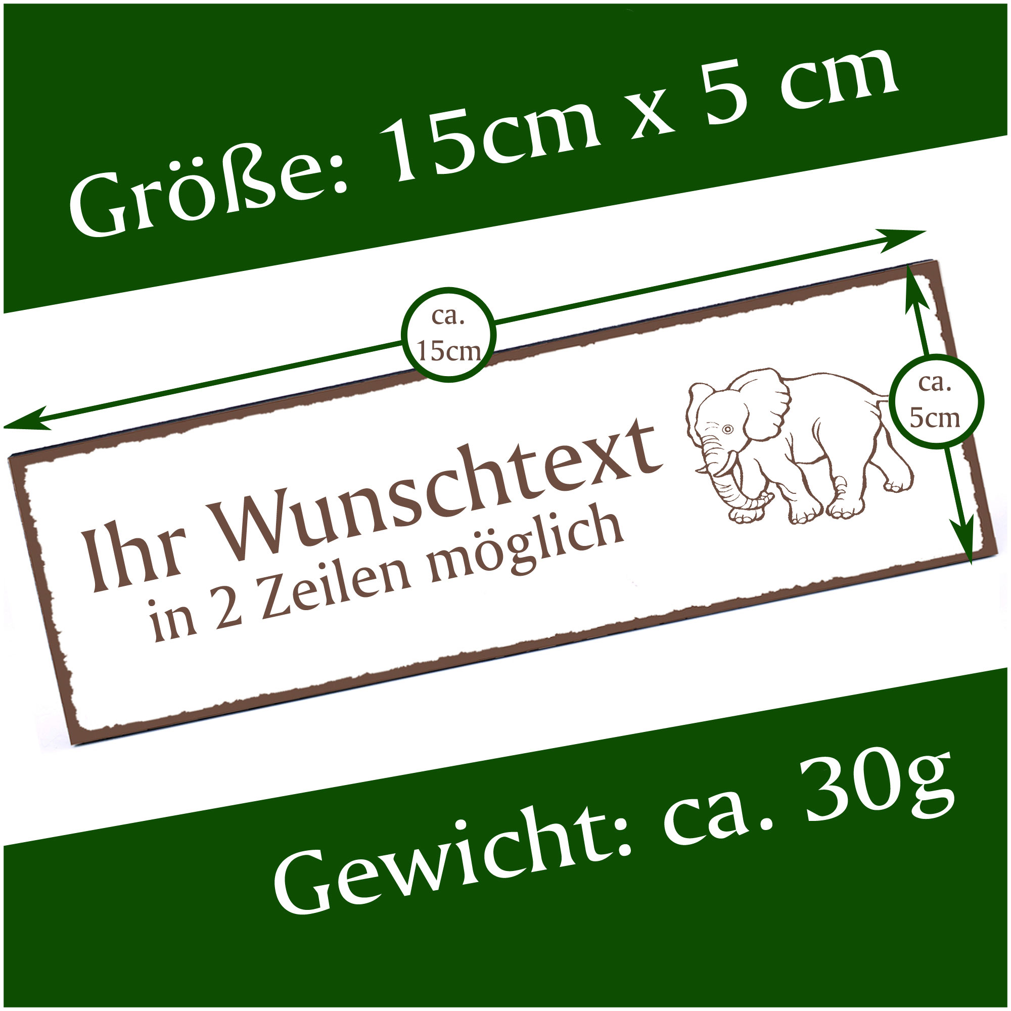 - HOLZSCHILD: Das Türschild ist ca. 150mm x 50mm groß. Das HDF Holz hat eine Stärke von 5mm. Insgesamt wiegt das Schild ca. 30g. Bitte vor Feuchtigkeit schützen