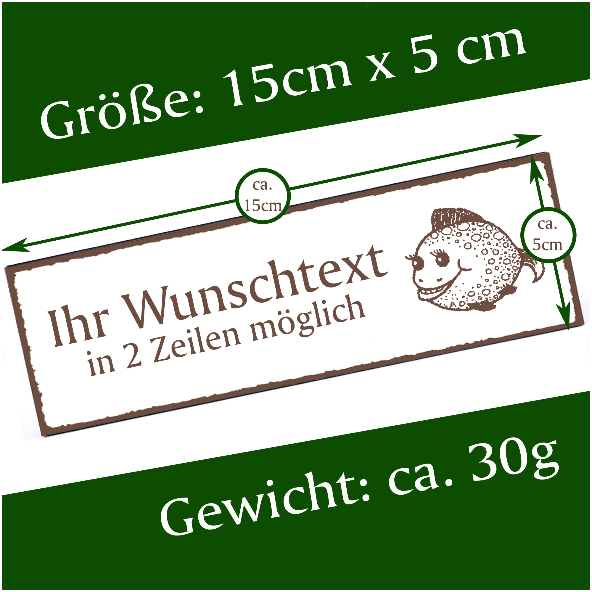 - HOLZSCHILD: Das Türschild ist ca. 150mm x 50mm groß. Das HDF Holz hat eine Stärke von 5mm. Insgesamt wiegt das Schild ca. 30g. Bitte vor Feuchtigkeit schützen