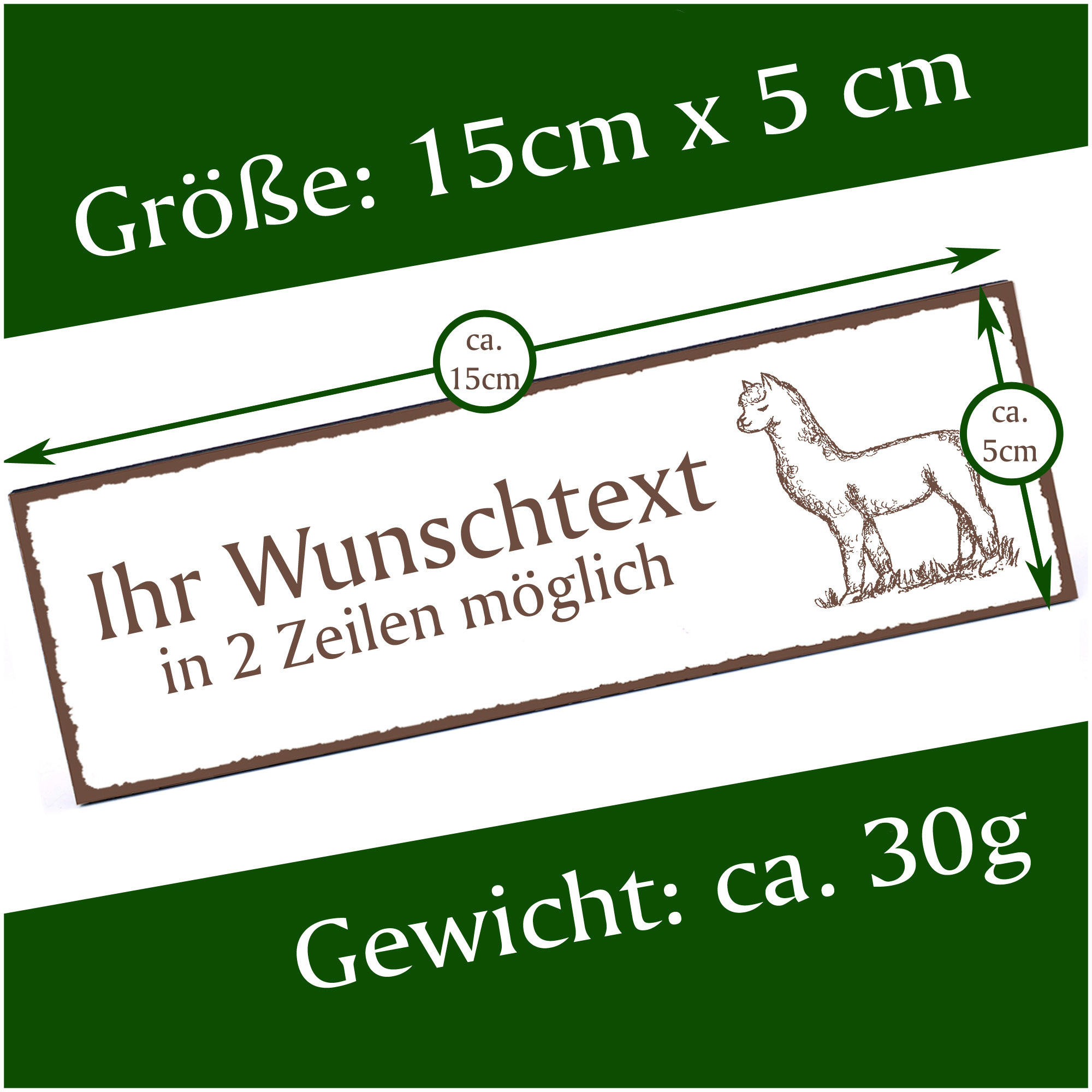 Türschild niedliches Lama Namensschild personalisiert mit Gravur - 150mm x 50mm - selbstklebend