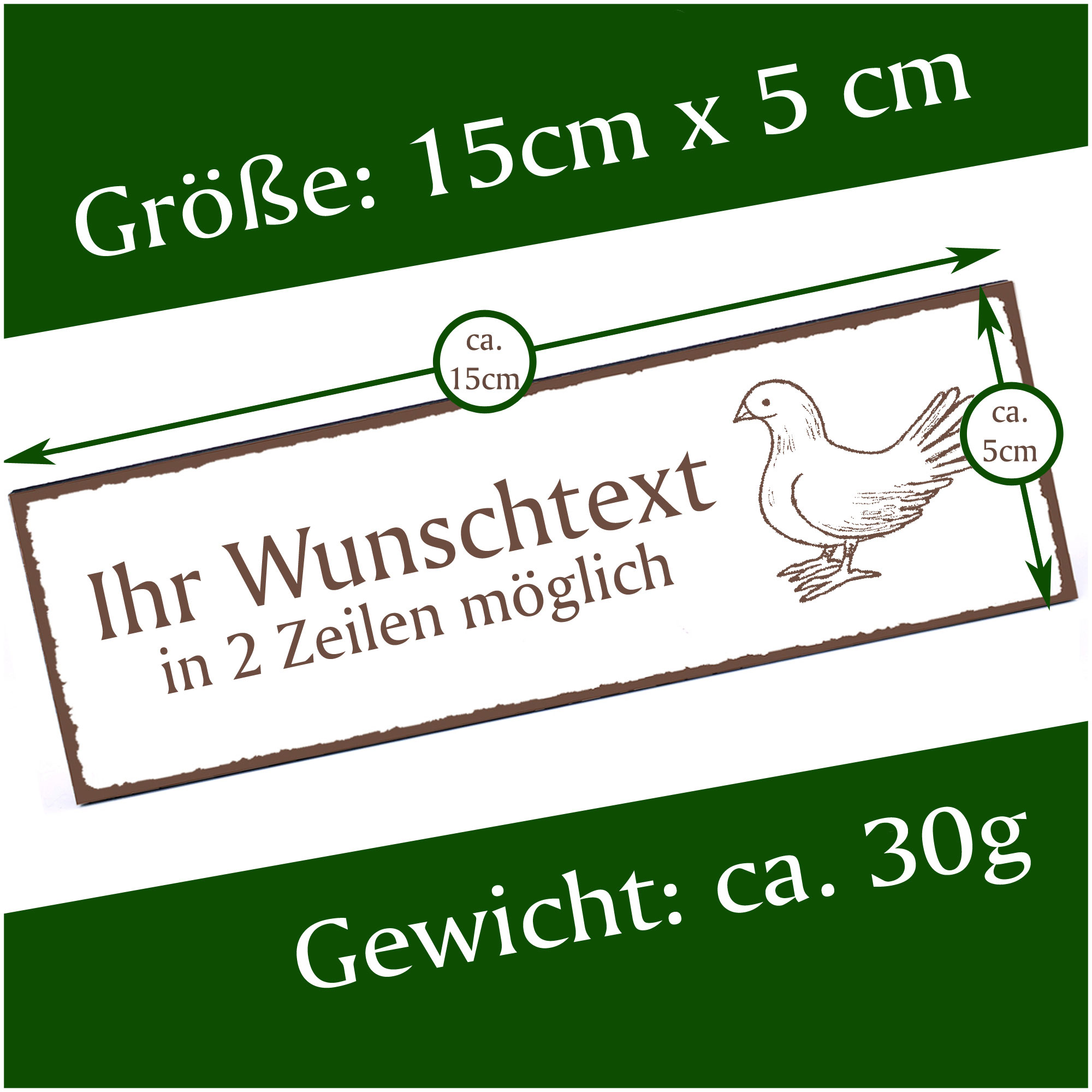 Türschild sitzende Taube Namensschild personalisiert mit Gravur - 150mm x 50mm - selbstklebend
