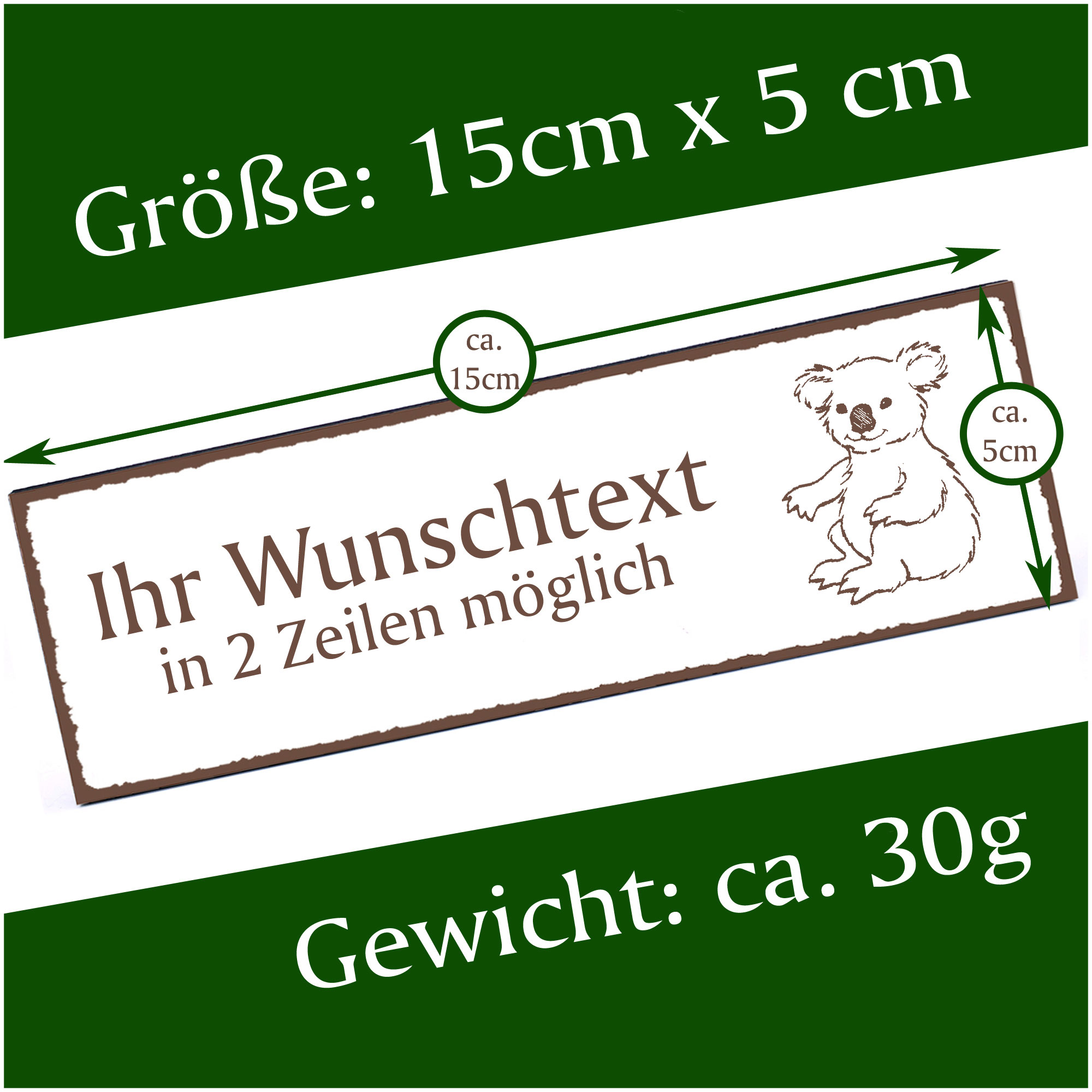 Produktinformationen "Türschild sitzender Koala Namensschild personalisiert mit Gravur - 150mm x 50mm - selbstklebend"