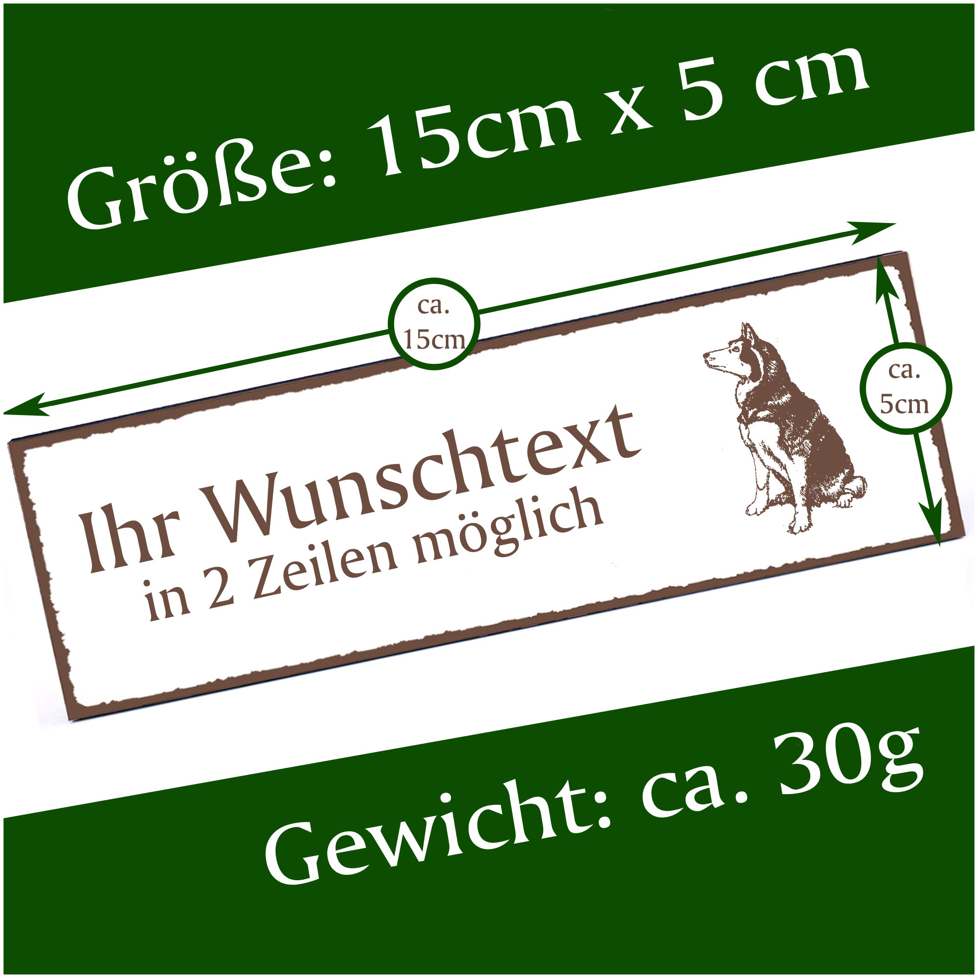 Türschild sitzender Siberian Husky Namensschild personalisiert mit Gravur - 150mm x 50mm - selbstkl