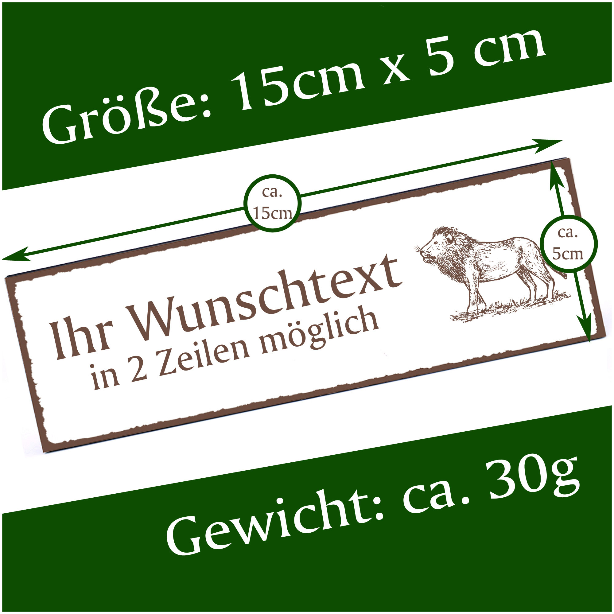 Türschild stehender Löwe Namensschild personalisiert mit Gravur - 150mm x 50mm - selbstklebend