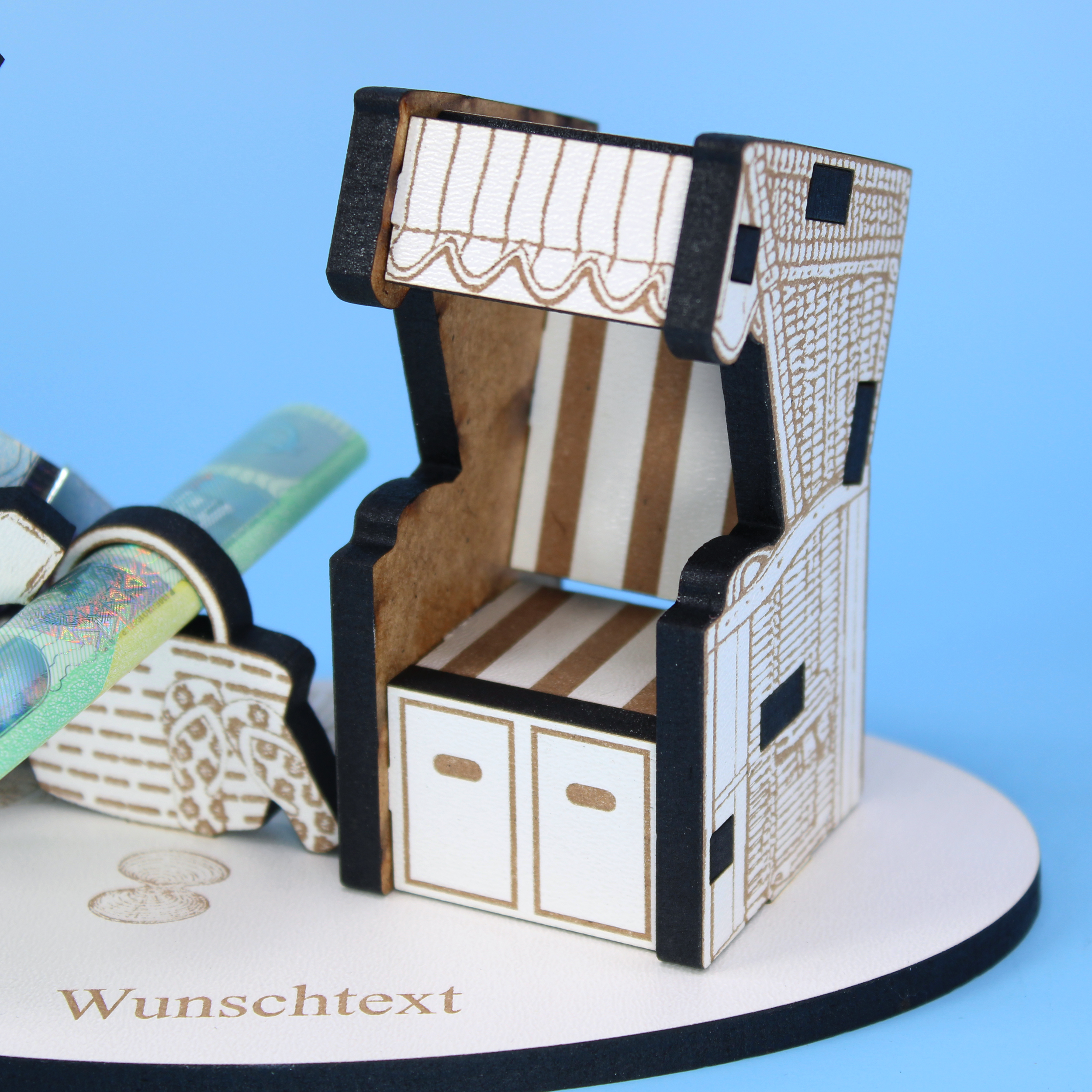 Personalisiertes Geld- & Gutscheingeschenk mit Wunschtext: Sie erhalten ein liebevoll gestaltetes Urlaubs-Geldgeschenk, das individuell mit Ihrem Wunschtext personalisiert wird. Ob Name, Datum oder persönlicher Gruß – die Gravur macht dieses Geschenk zu einem einzigartigen Unikat für besondere Anlässe.
