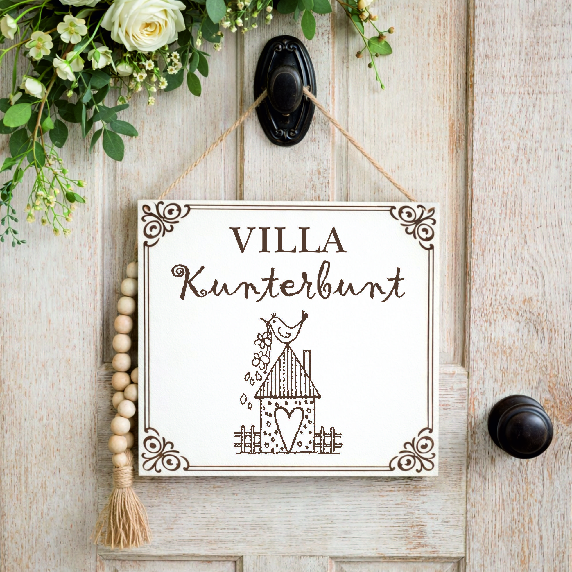 Dieses liebevoll gestaltete Villa Kunterbunt Schild sorgt für eine freundliche und gemütliche Atmosphäre in jedem Zuhause.