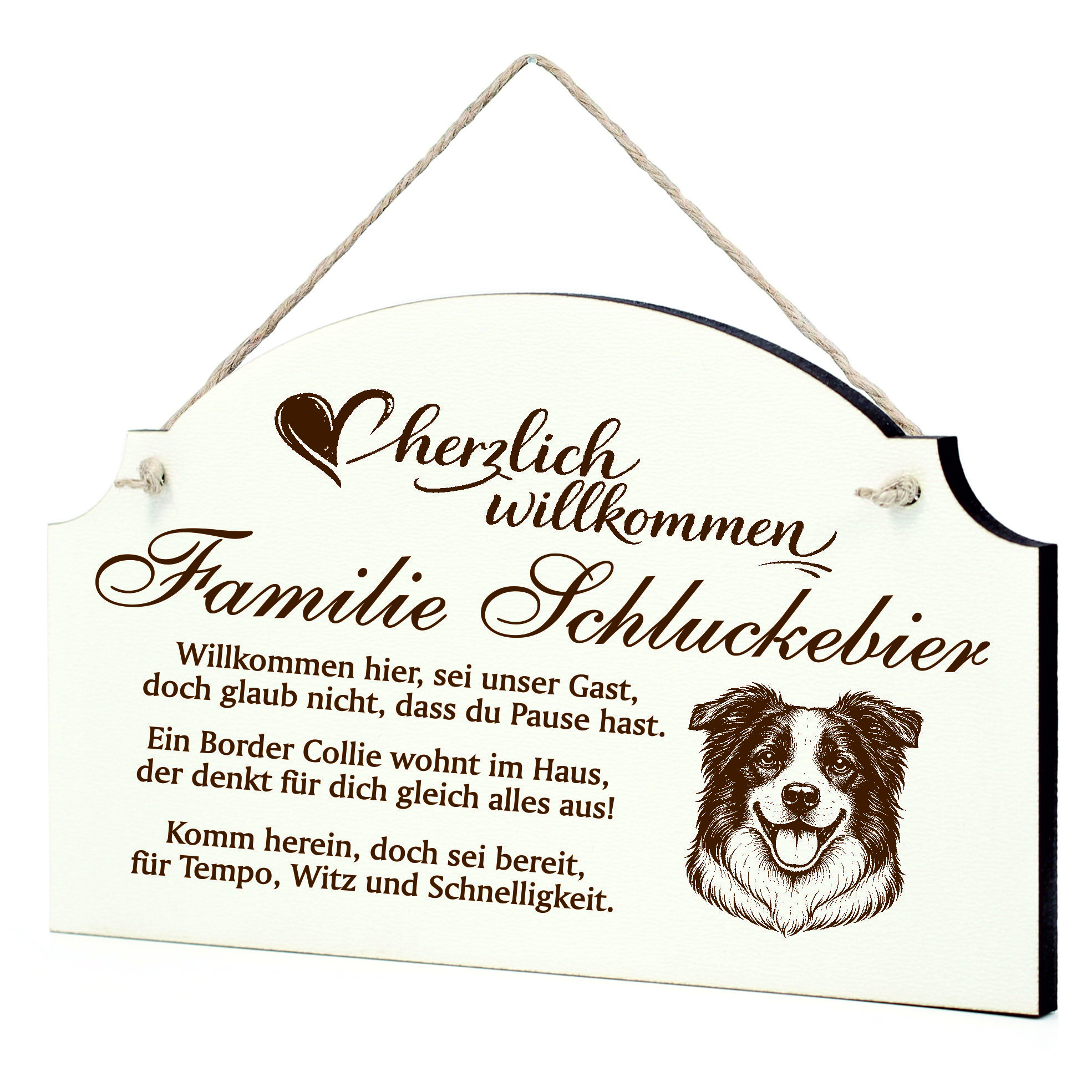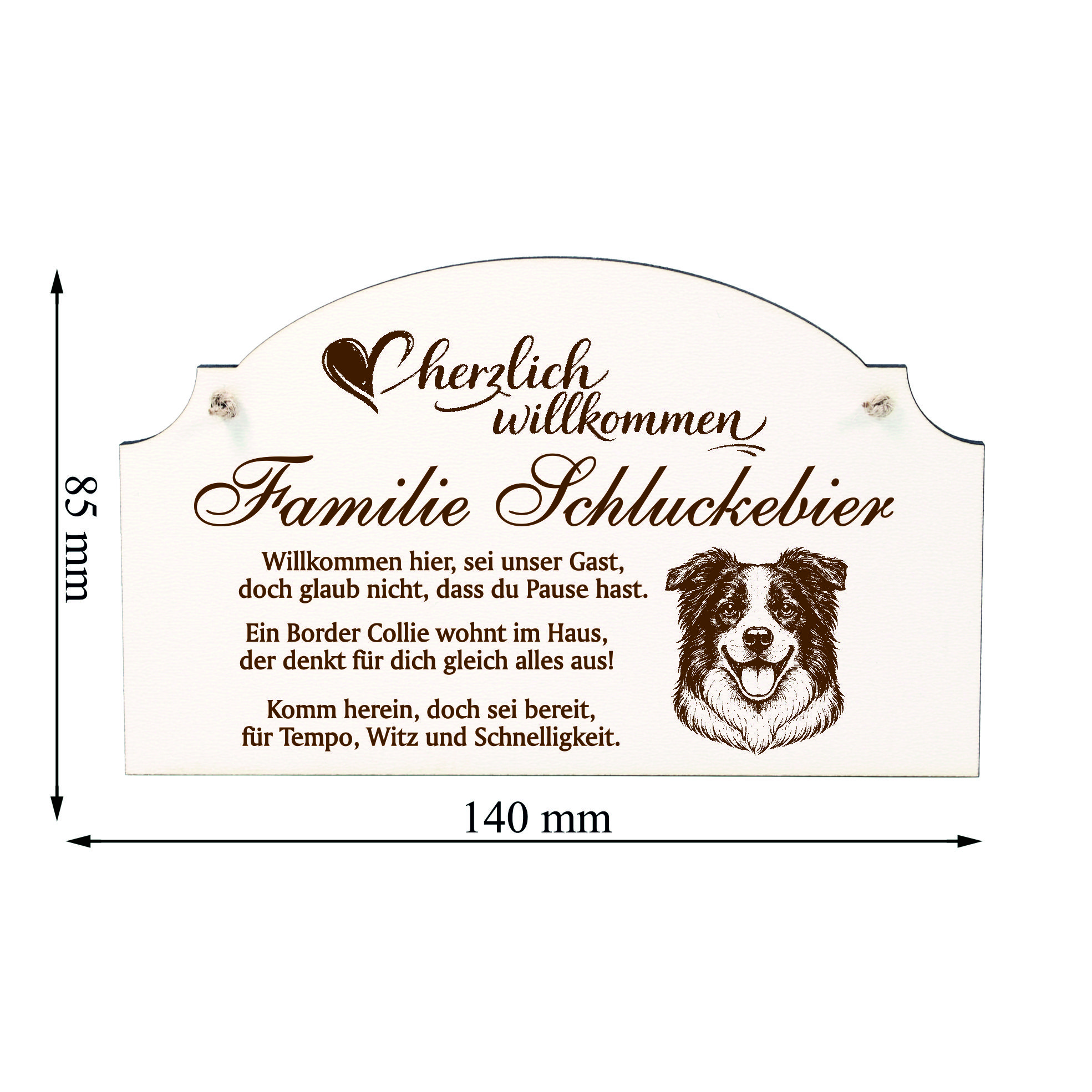 Willkommensschild Border Collie personalisiert - Haustürschild mit Hundespruch - 14 x 8,5 cm