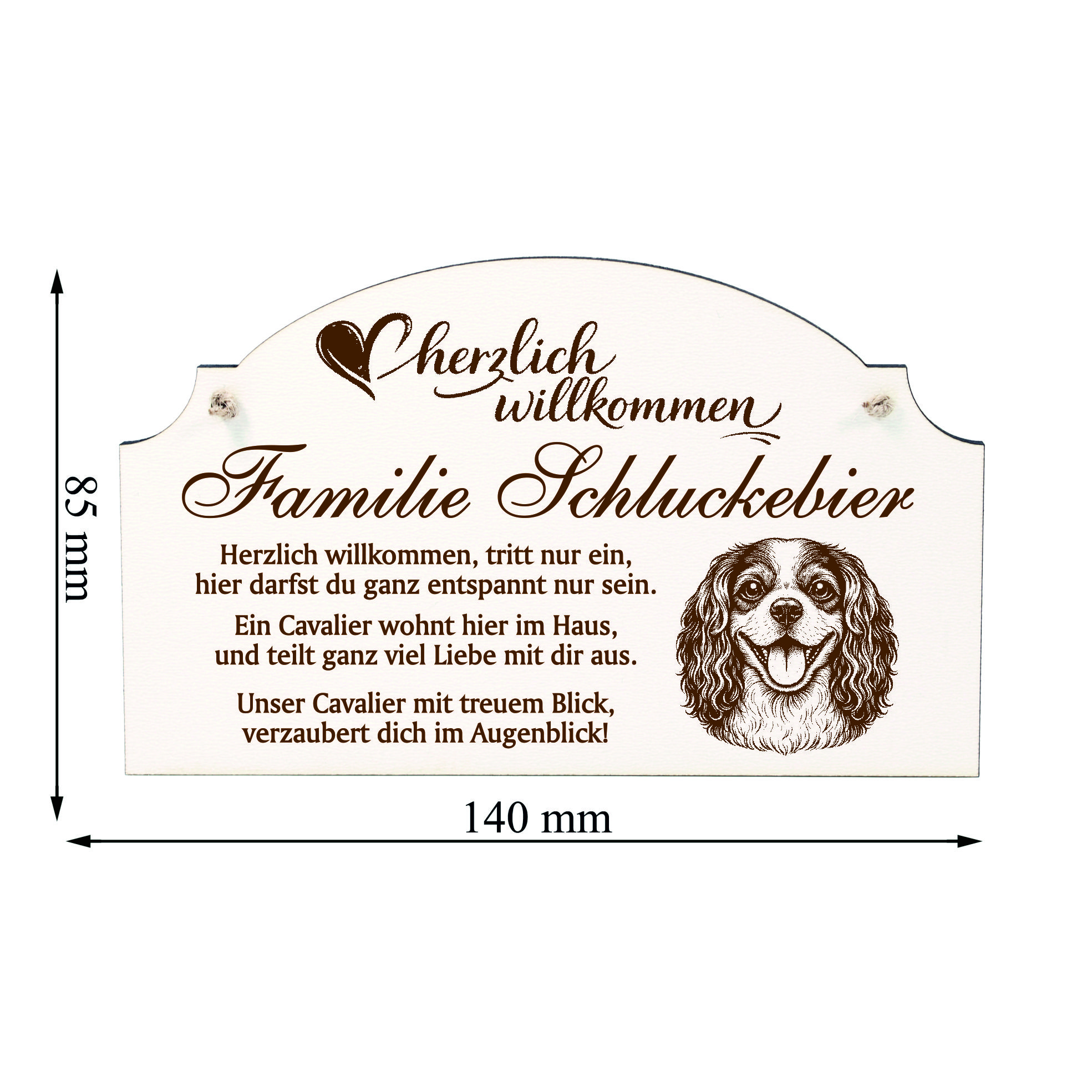 Willkommensschild Cavalier King Charles Spaniel personalisiert - Haustürschild mit Hundespruch - 14 x 8,5 cm