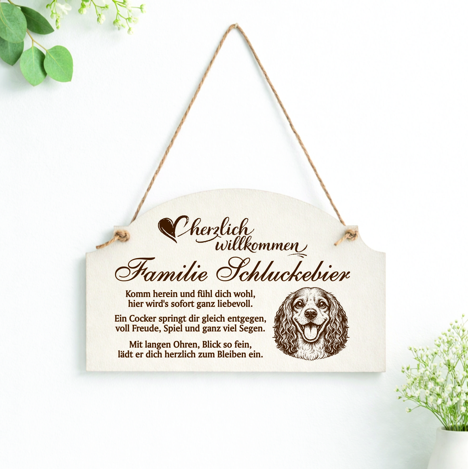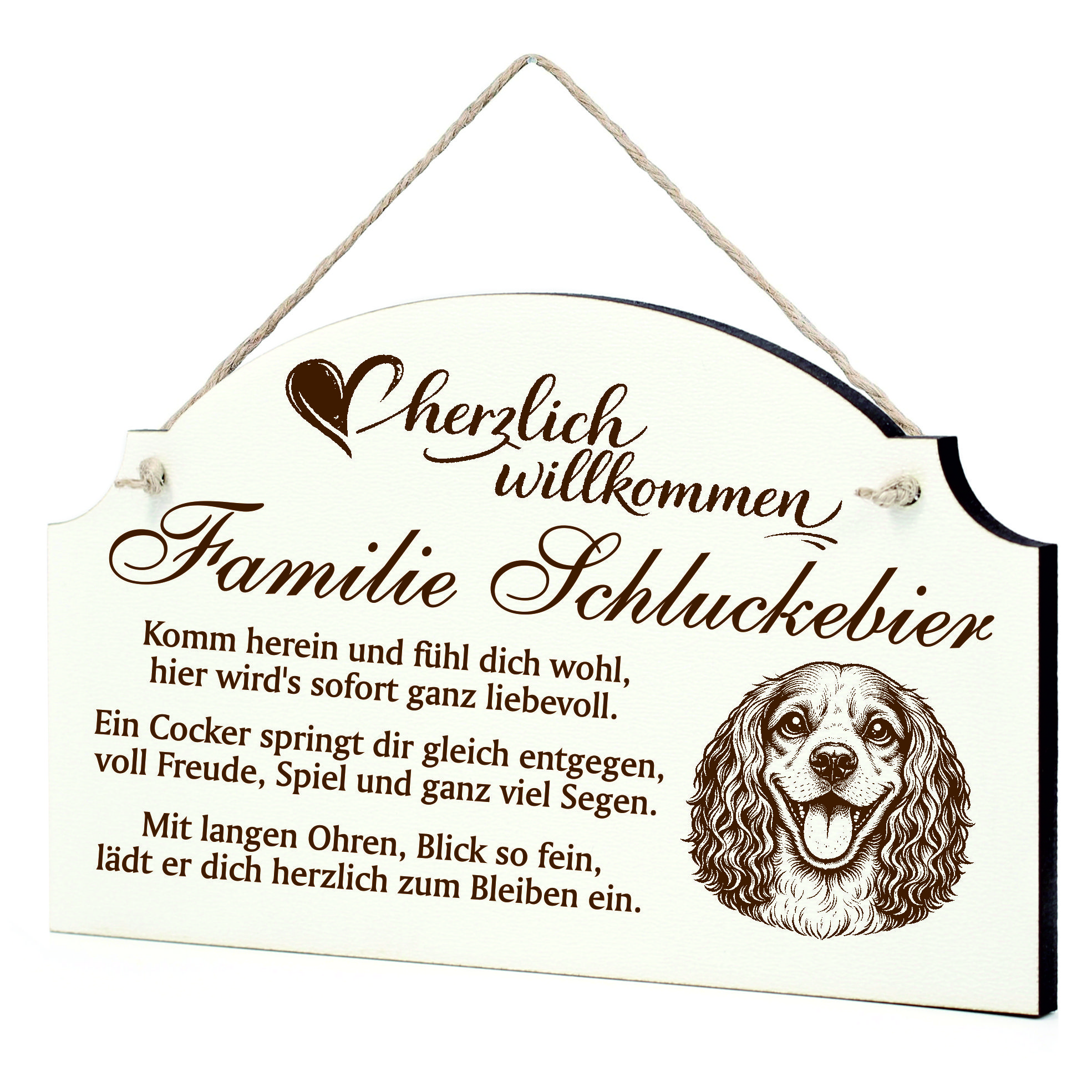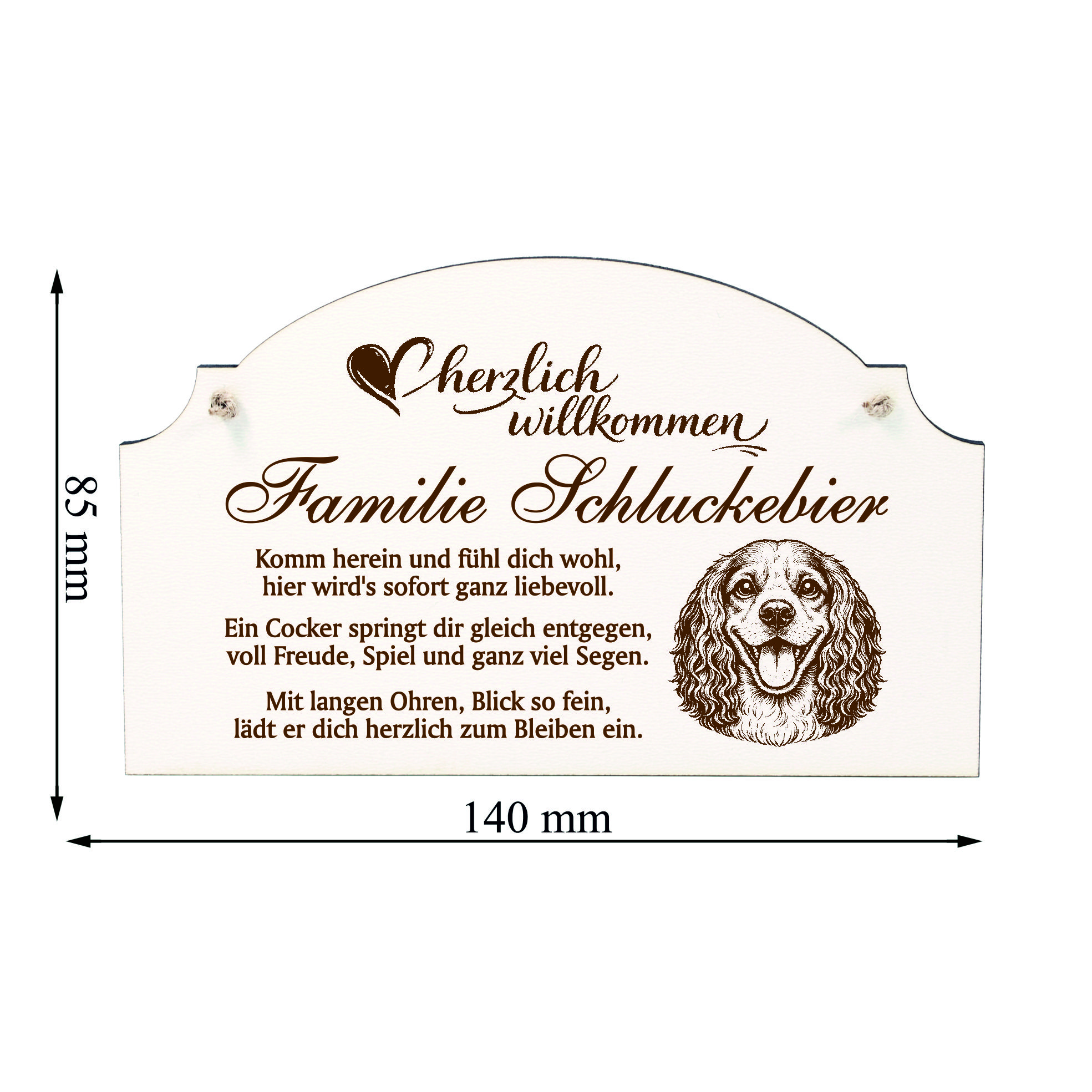 Willkommensschild Cocker Spaniel personalisiert - Haustürschild mit Hundespruch - 14 x 8,5 cm