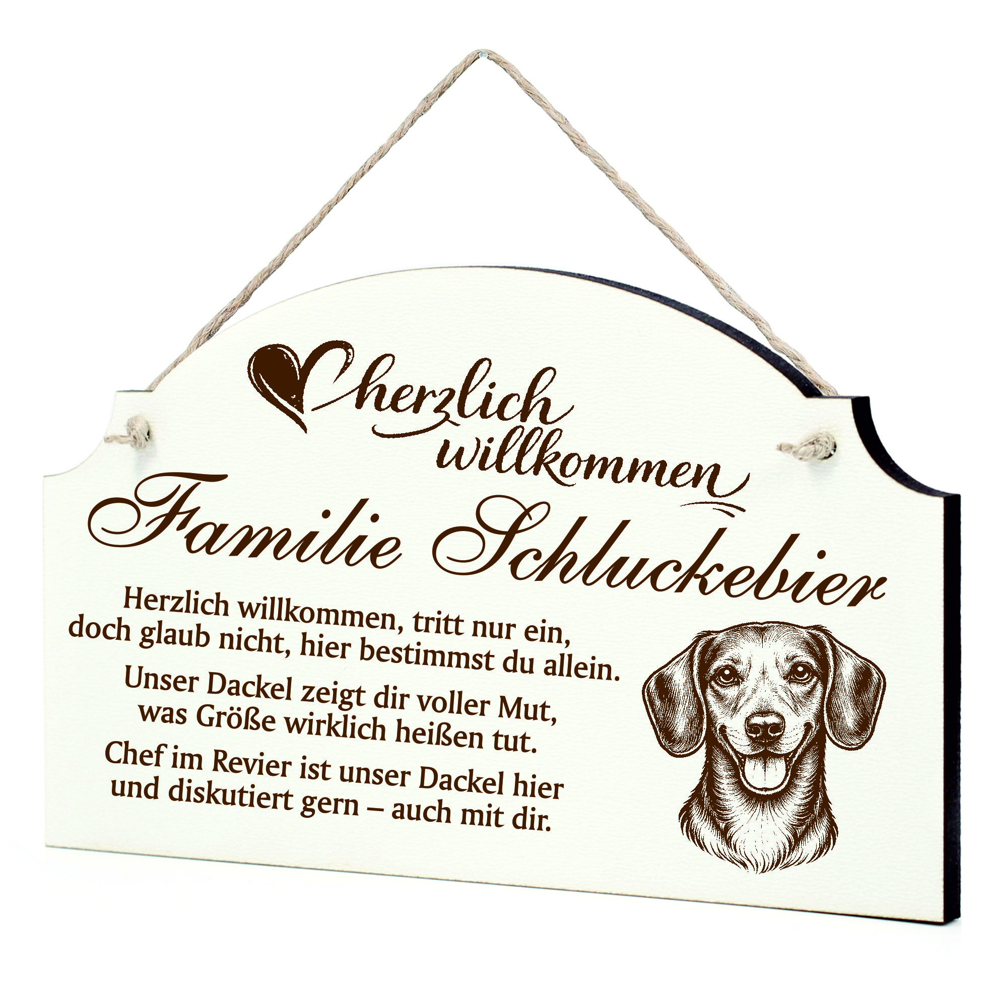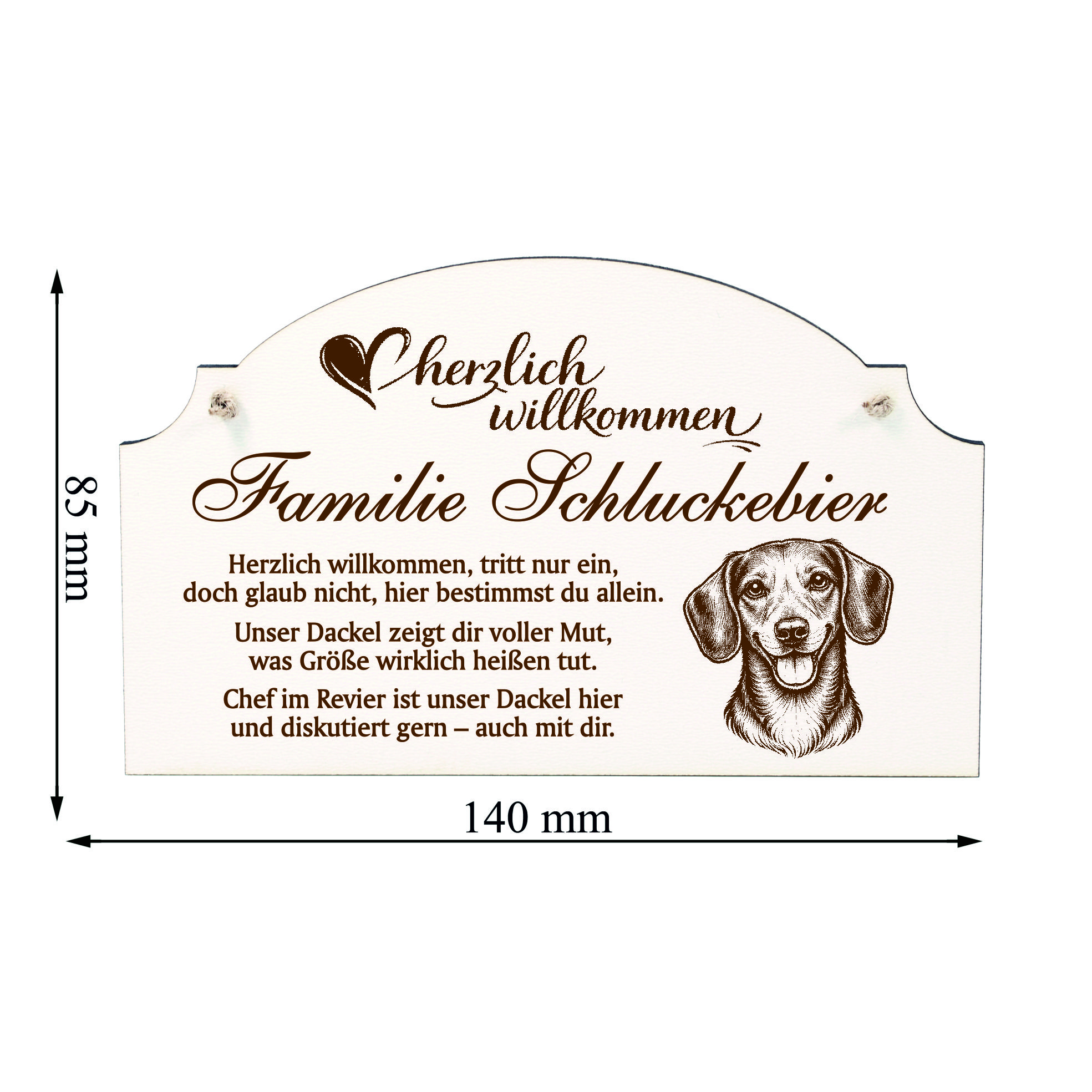 Willkommensschild Dackel personalisiert - Haustürschild mit Hundespruch - 14 x 8,5 cm
