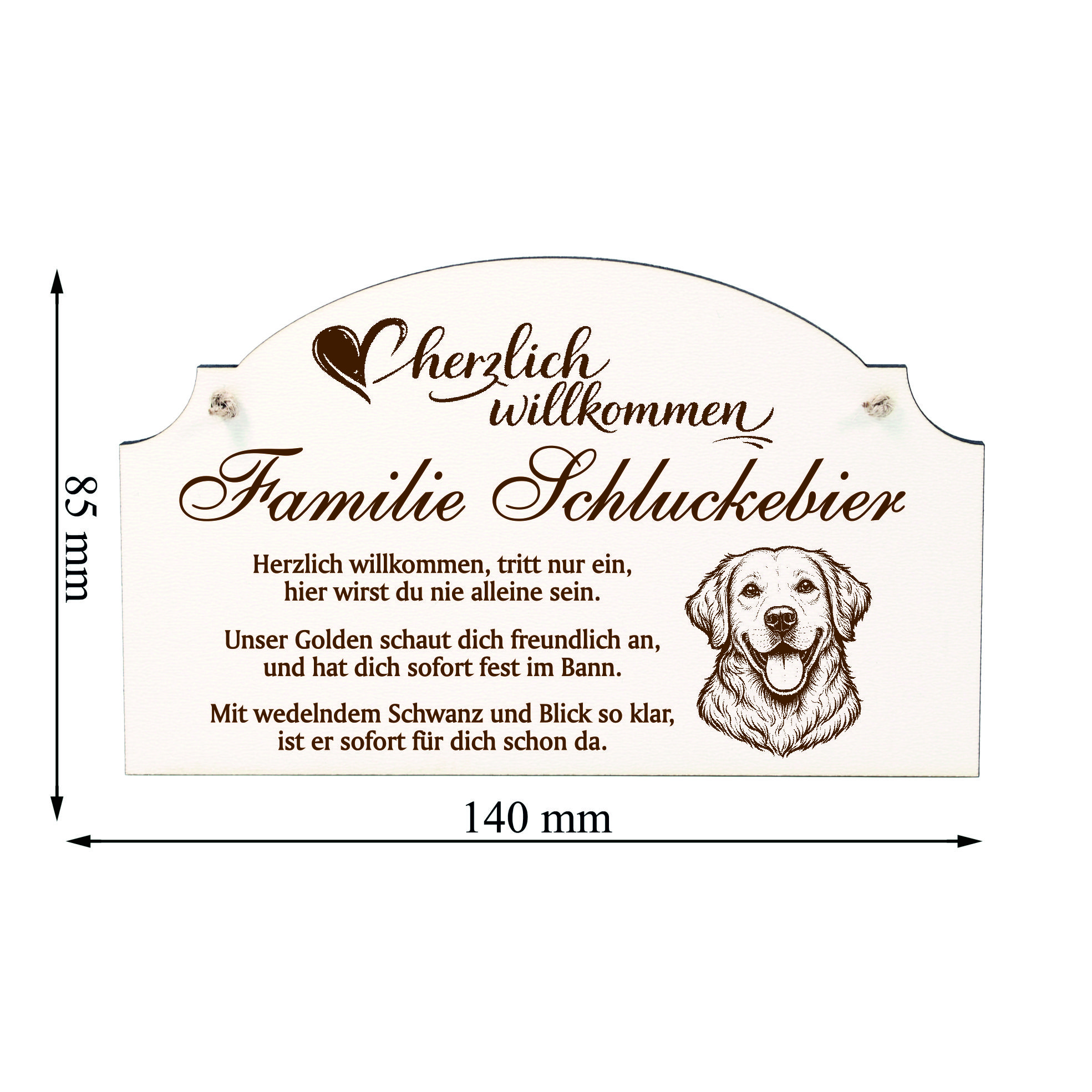 Willkommensschild Golden Retriever personalisiert - Haustürschild mit Hundespruch - 14 x 8,5 cm