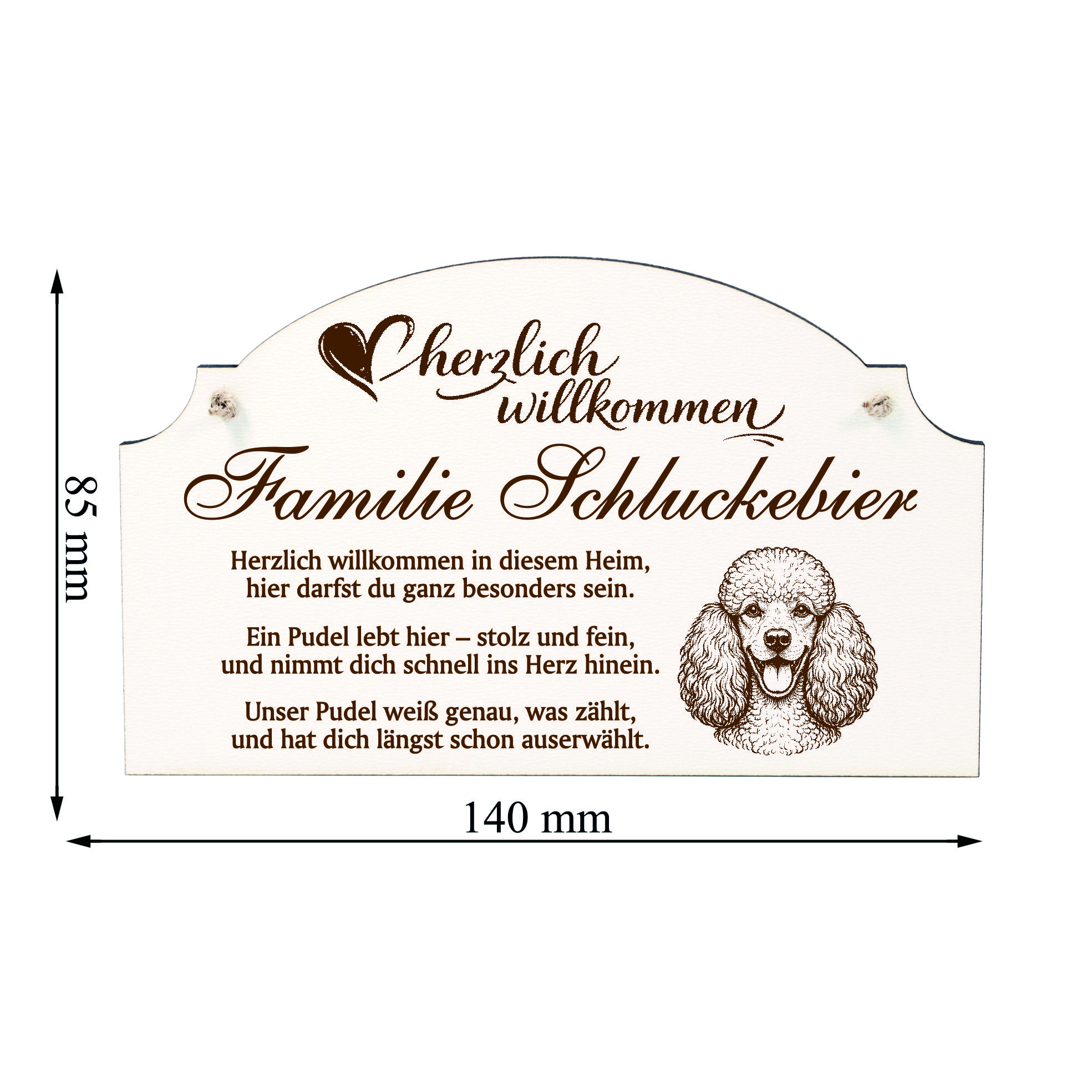 Willkommensschild Pudel personalisiert - Haustürschild mit Hundespruch - 14 x 8,5 cm