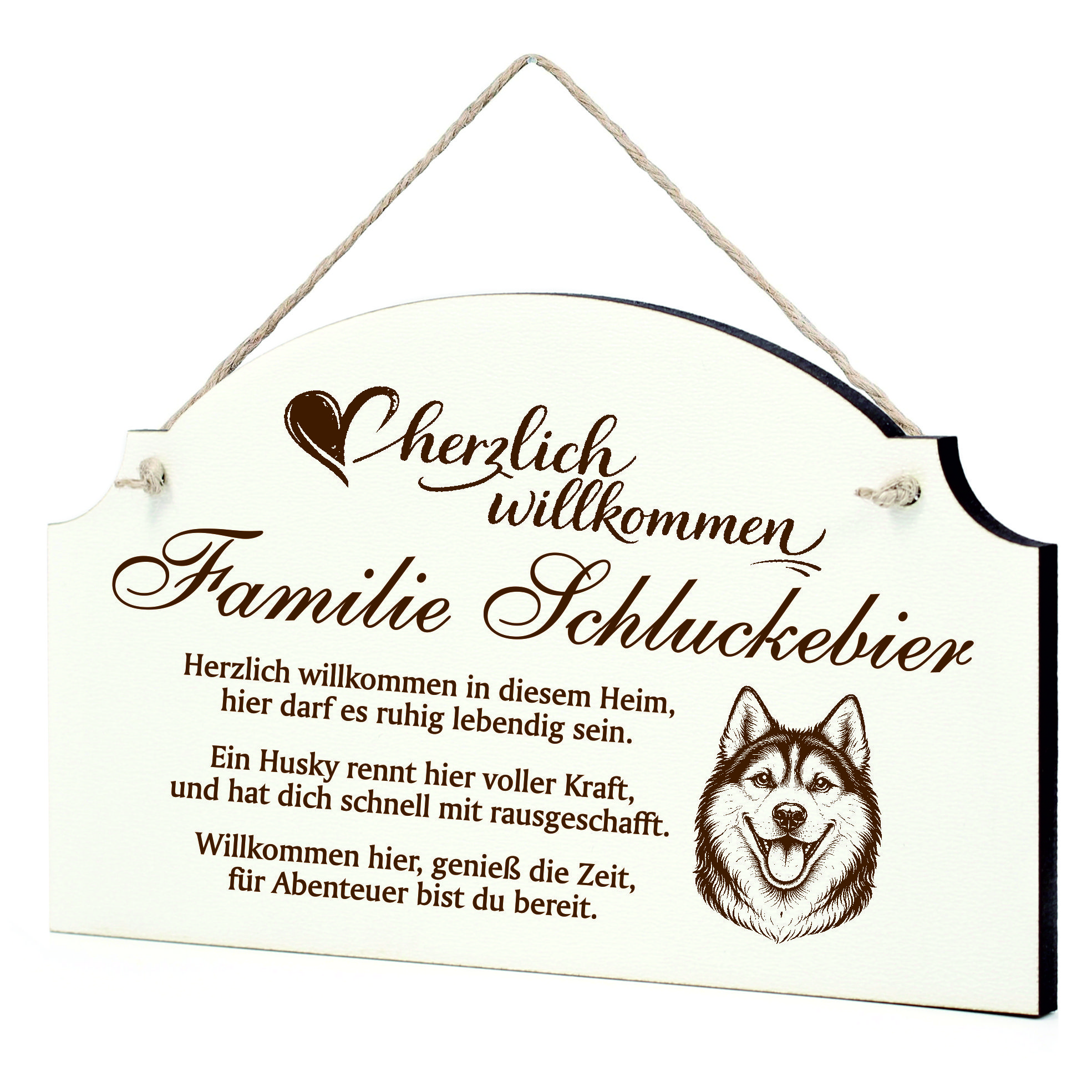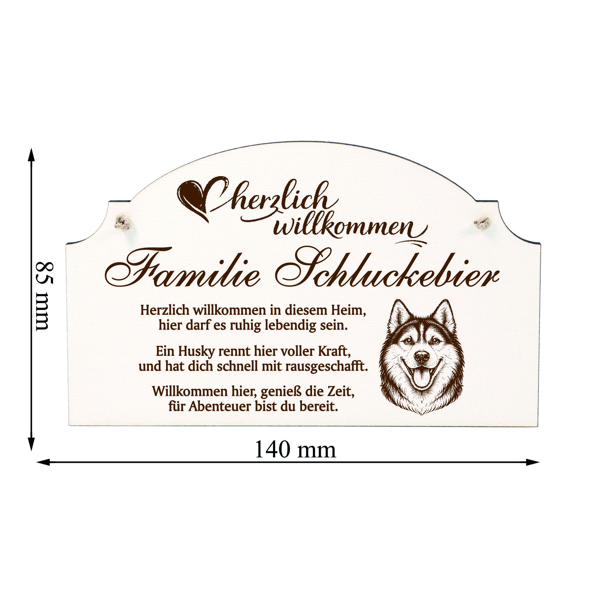 Willkommensschild Siberian Husky personalisiert - Haustürschild mit Hundespruch - 14 x 8,5 cm