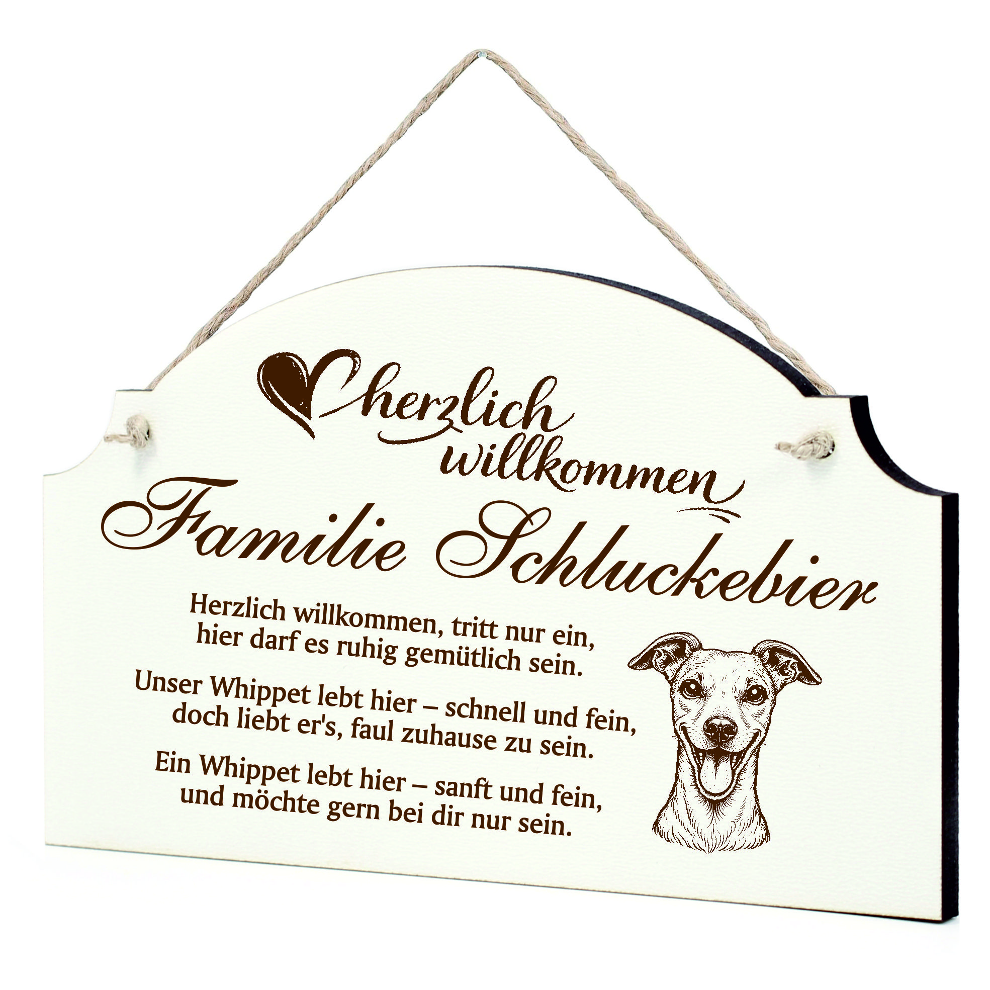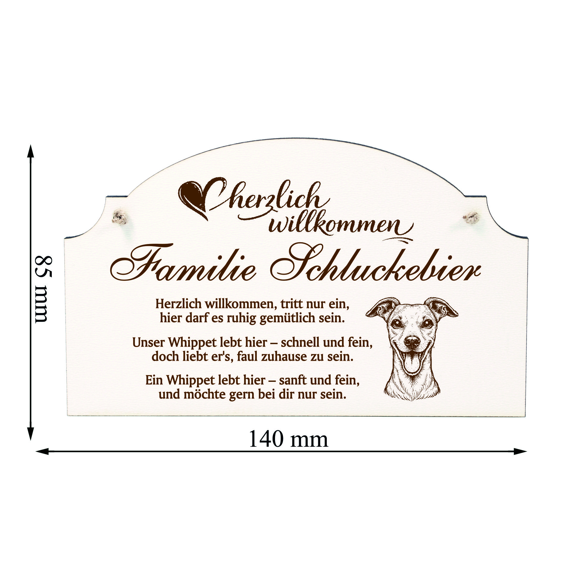 Willkommensschild Whippet personalisiert - Haustürschild mit Hundespruch - 14 x 8,5 cm