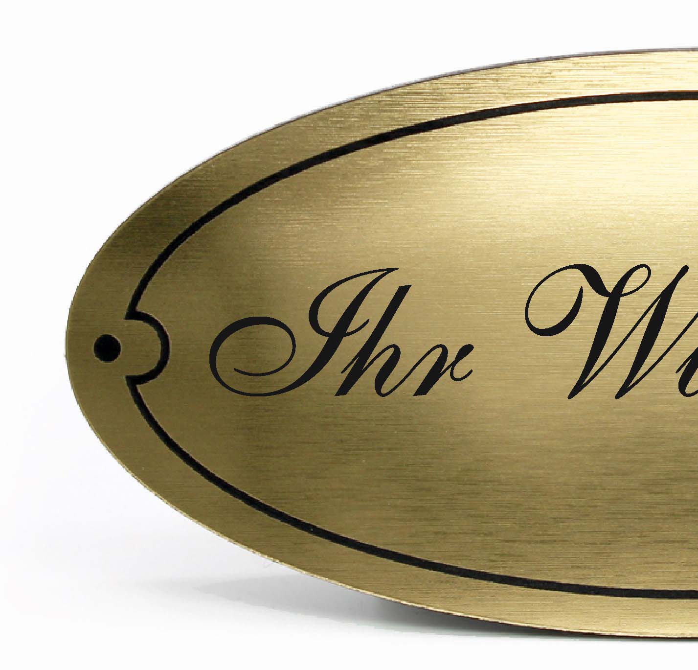 Wunschtext Beschriftung personalisiert Schild oval Türschild Kunststoff Gold selbstklebend 15x7cm