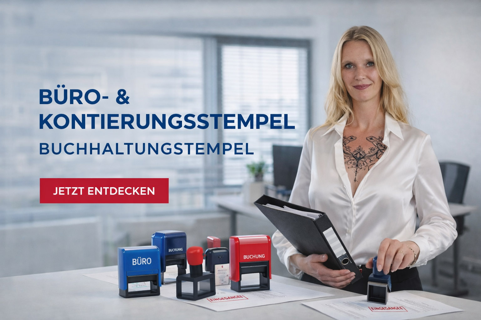 Struktur, Übersicht und Effizienz – eine professionelle Büroorganisation ist die Grundlage für reibungslose Abläufe im Unternehmen. Besonders im Bereich Buchhaltung und Verwaltung sind klare Kennzeichnungen unverzichtbar. Unsere hochwertigen Büro- und Buchhaltungsstempel sorgen für schnelle, saubere und einheitliche Prozesse im Arbeitsalltag.